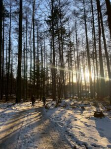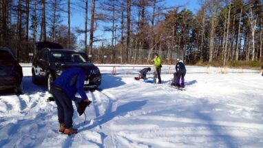 下山途中、赤岩ノ頭付近で進路を誤り、予定していた赤岳鉱泉とは別の方向へ進んでしまう場面がありました。 行きとは違うルートだと感じつつも、そのまま進行。 雪が深く、足を取られながら30分ほど下ったところで休憩。そこで改めて確認するとルートが違っていることがはっきりしました。 そこから来た道を引き返し、行きに踏み固められた雪のおかげで、約30分ほどで元の地点まで戻ることができました。 無事に正しいルートへ戻り、13時に赤岳鉱泉へ到着。 みんなホッとした表情でした。 デポしていた荷物を回収し、下山開始。 もふもふの雪を眺めながら、のんびりと歩きます。 「夕日との競争だな」と浅田さんがつぶやきます。 行きと変わらずおしゃべりをしながらペースよく下山。 16時半、無事に登山口へ到着。夕日に勝ったぞーー!!!