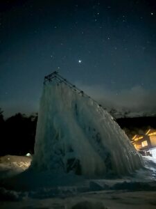 夜は再び外に出て星空撮影。 それぞれの知恵と機材を持ち寄り、一枚の写真に想いを込めて撮影。 アイスキャンディーと山と星空が一緒に写った、思い出に残る一枚が撮れました。