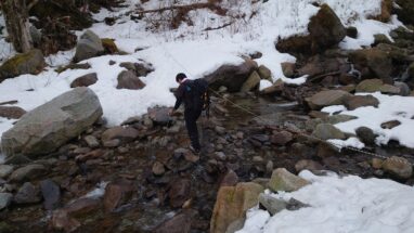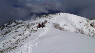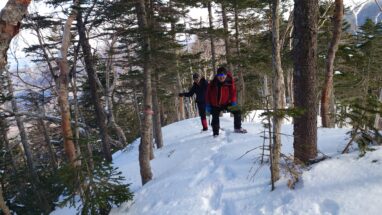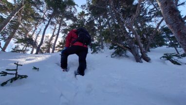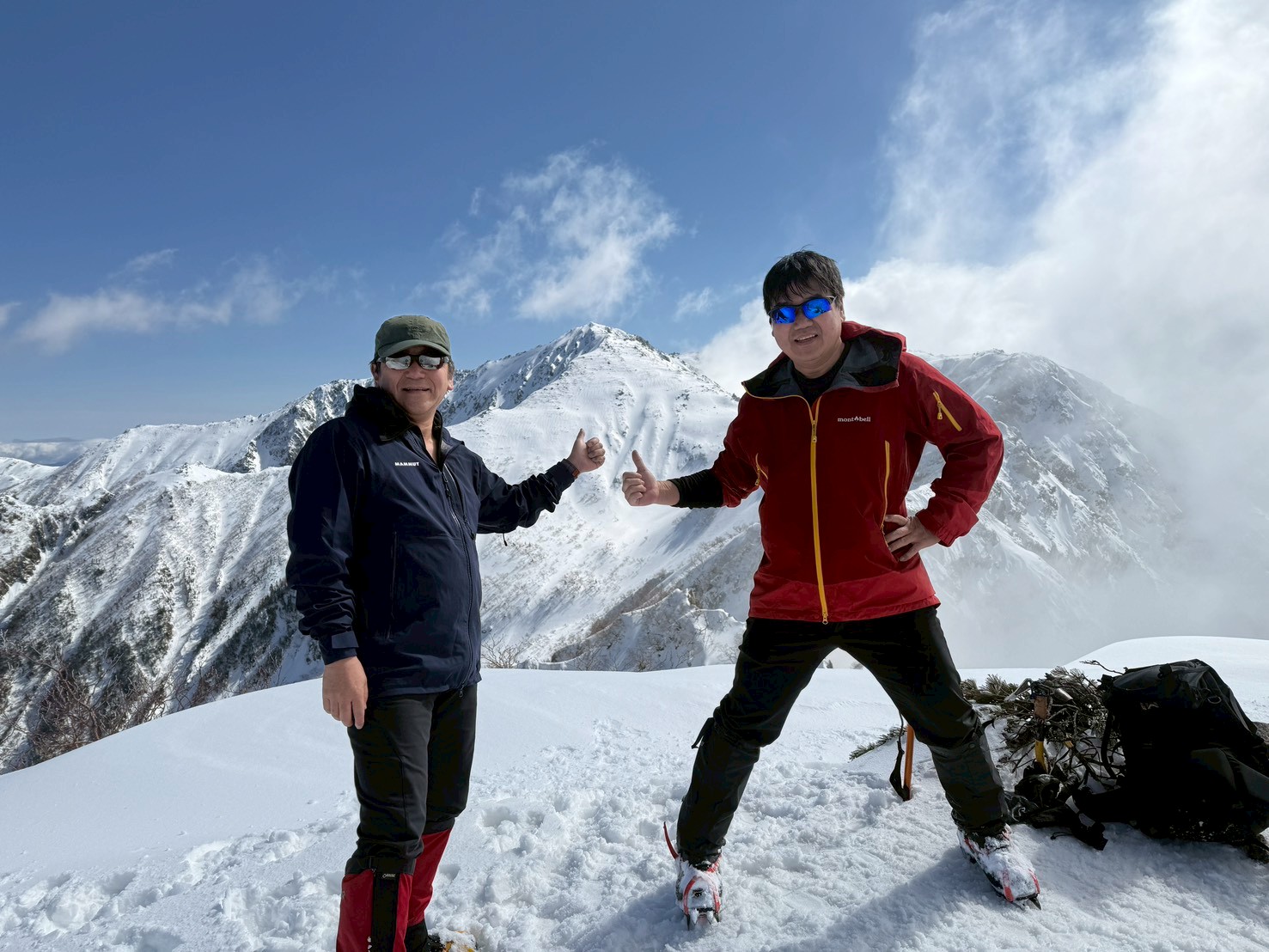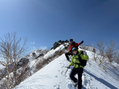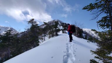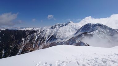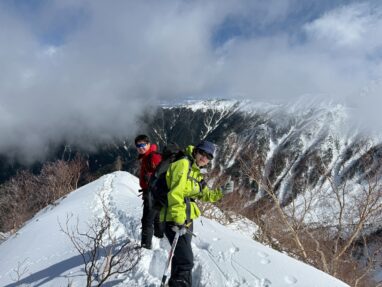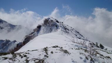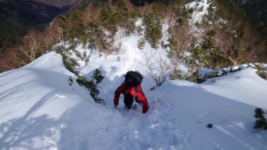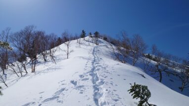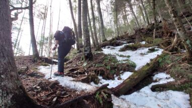 ここ最近の暖かさで雪はグズグズですっかり春山みたいな雪質がしばらく続く。雪の量的にはチェンスパがいいのだけれど腐った雪で滑りやすいのでチェンスパは諦めてアイゼンを履く。