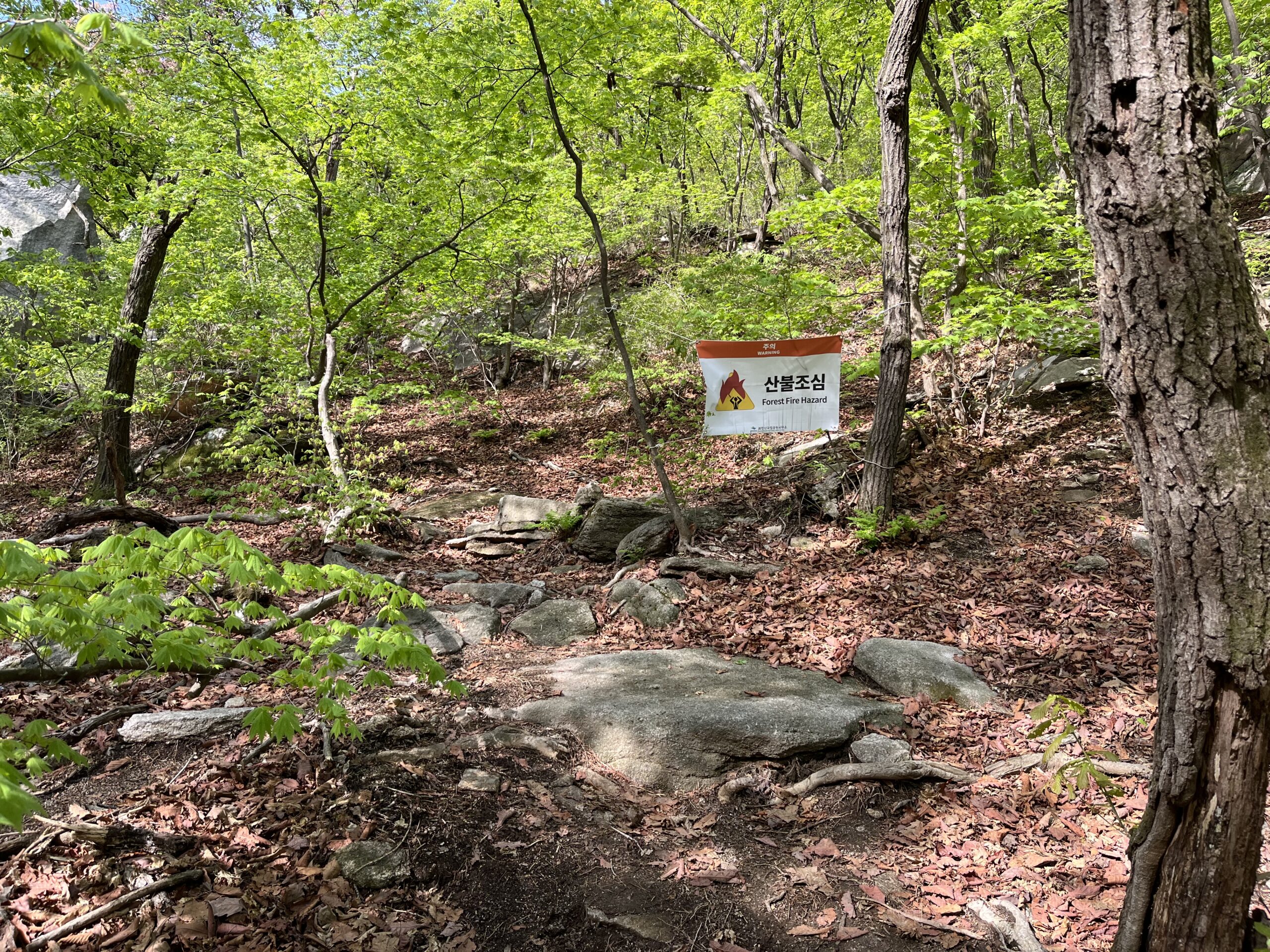 山火事注意の表示を目指して進む。ここまでは迷うことなく進むことができる。