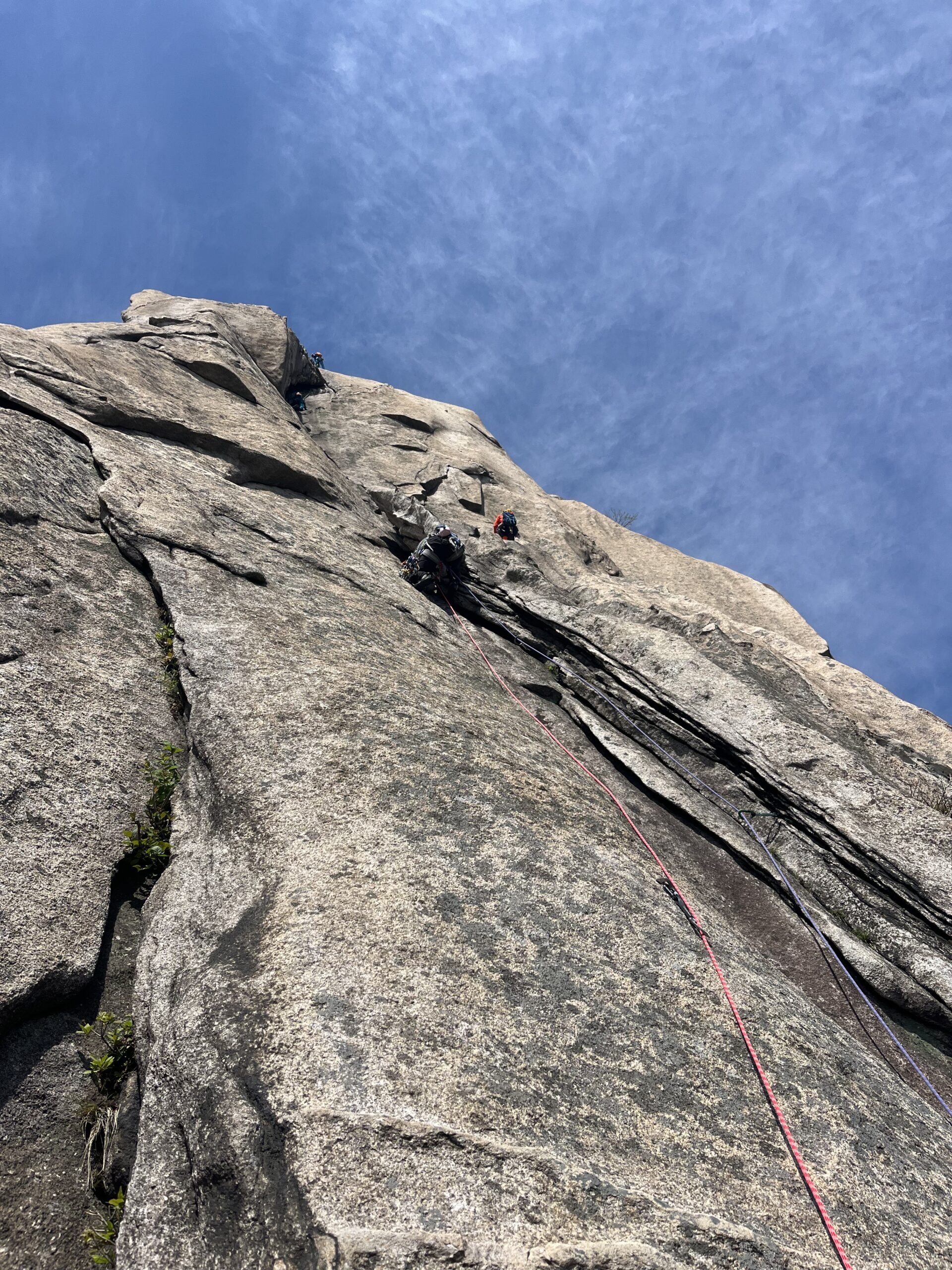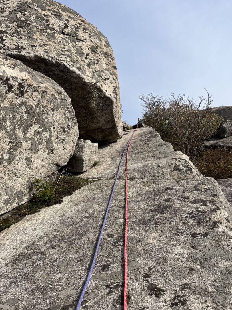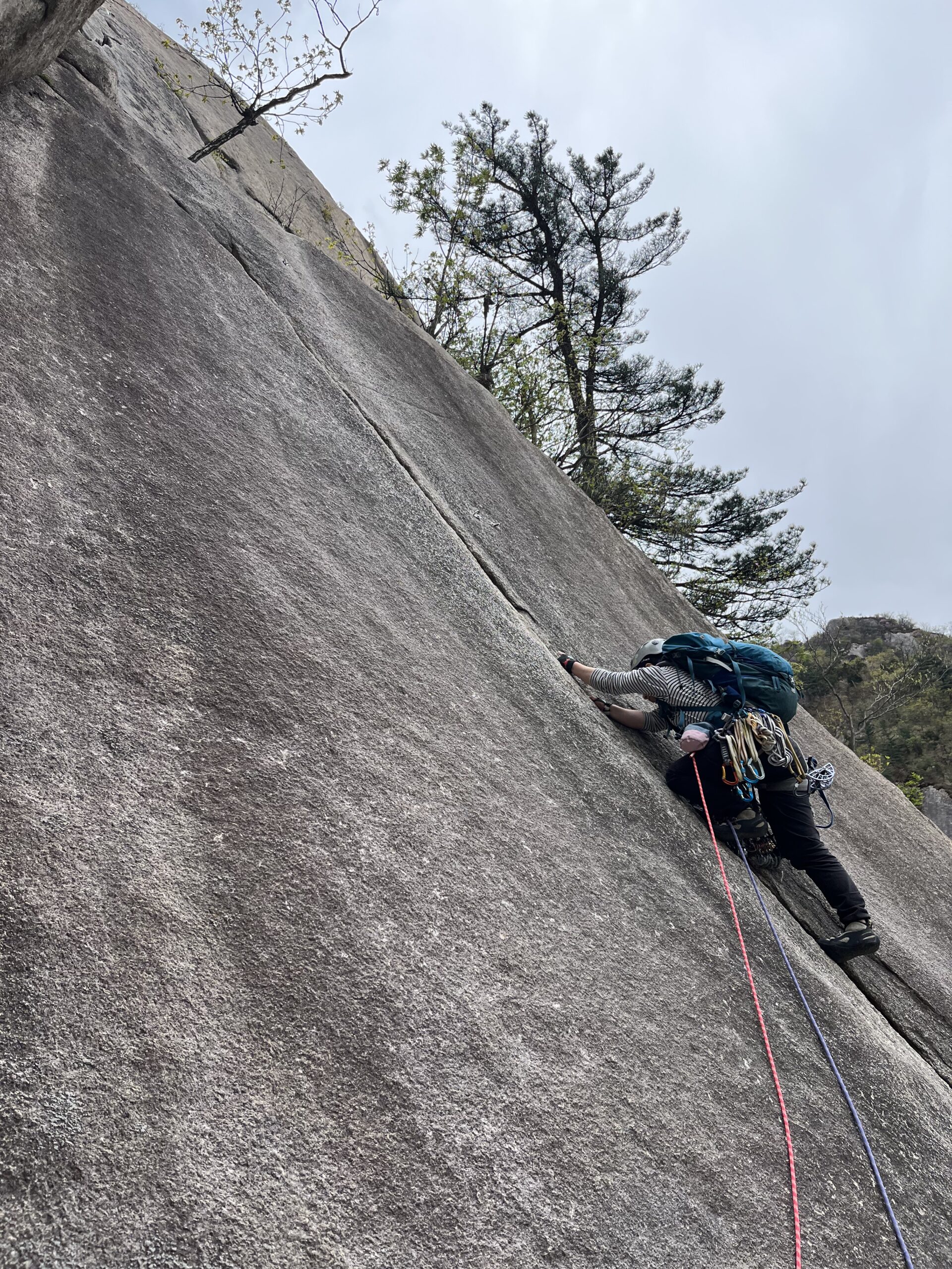 後続の韓国人クライマー達はフレーク外のスラブを登っていた。(フレーク外のスラブはカムを決めれない。ボルトなし。安心を買うならフレークに突っ込んだ方が良さそう)