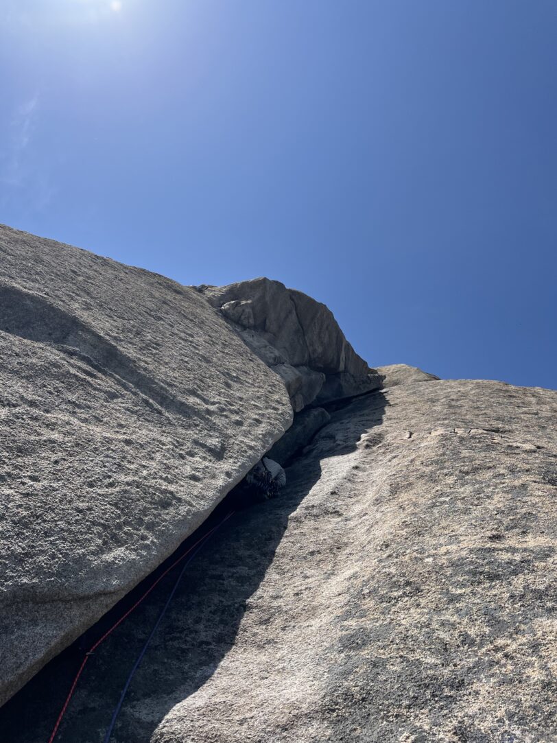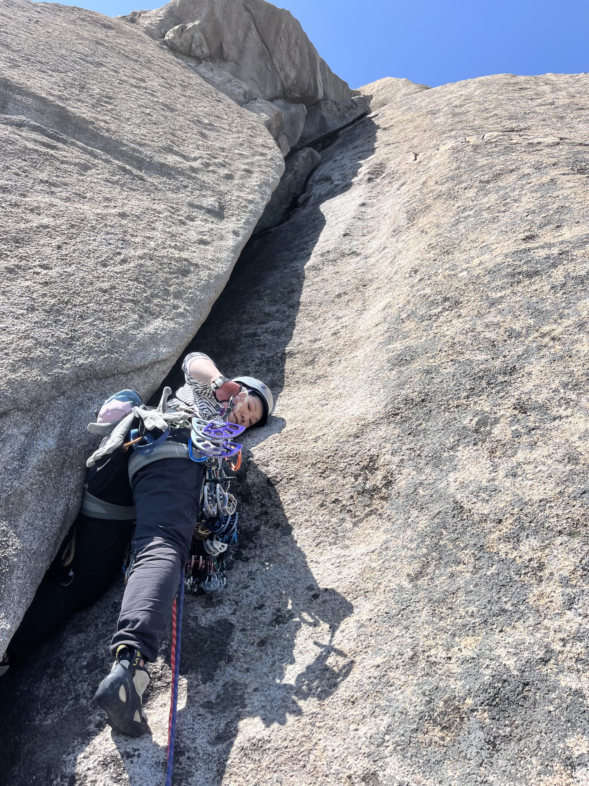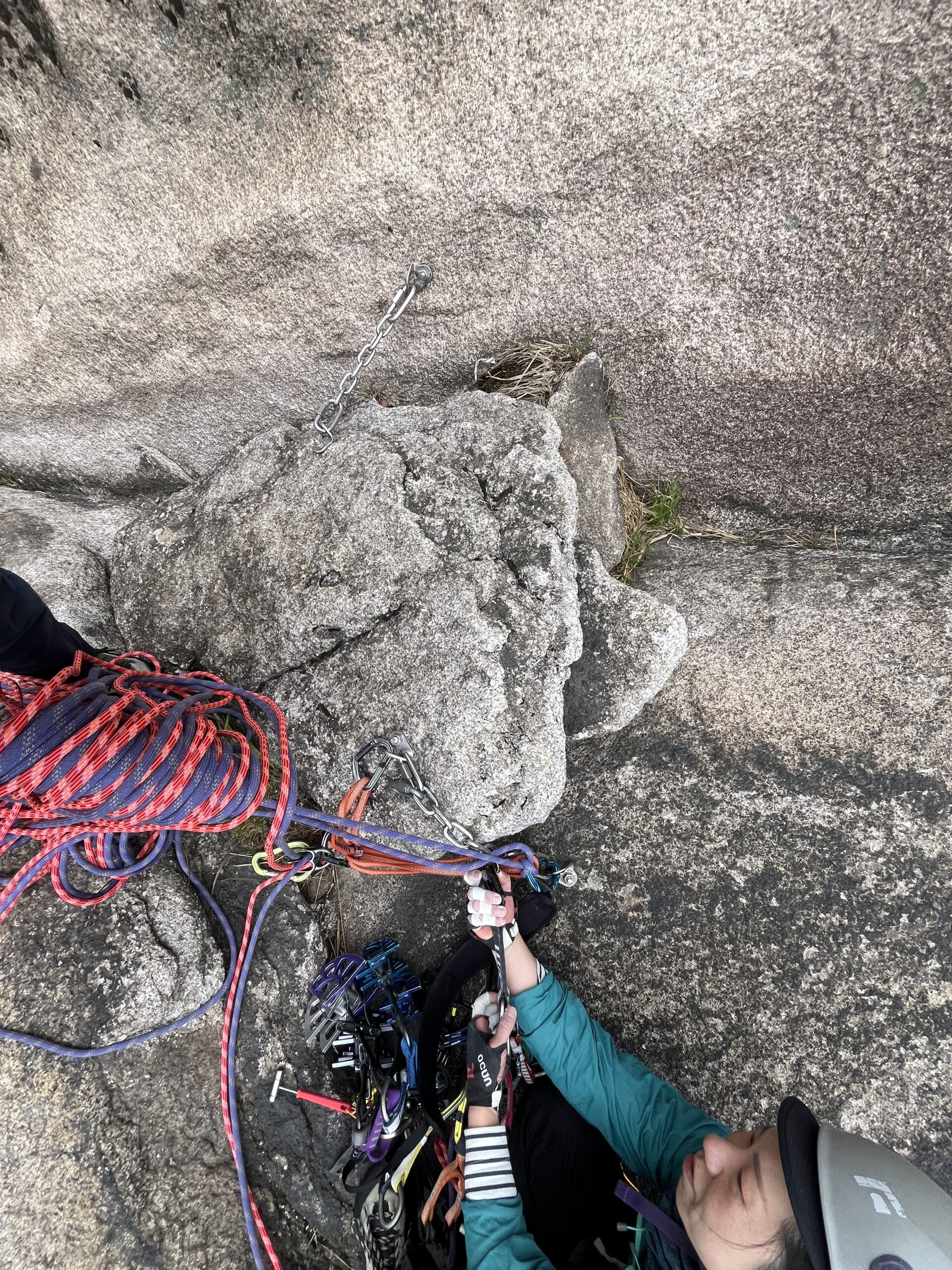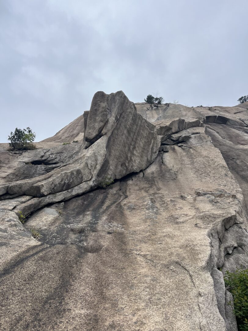 後続の韓国人クライマー達はフレーク外のスラブを登っていた。(フレーク外のスラブはカムを決めれない。ボルトなし。安心を買うならフレークに突っ込んだ方が良さそう)