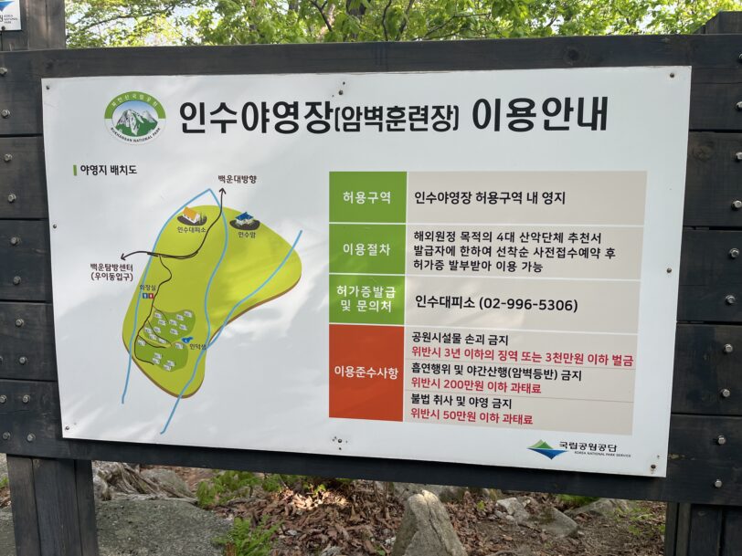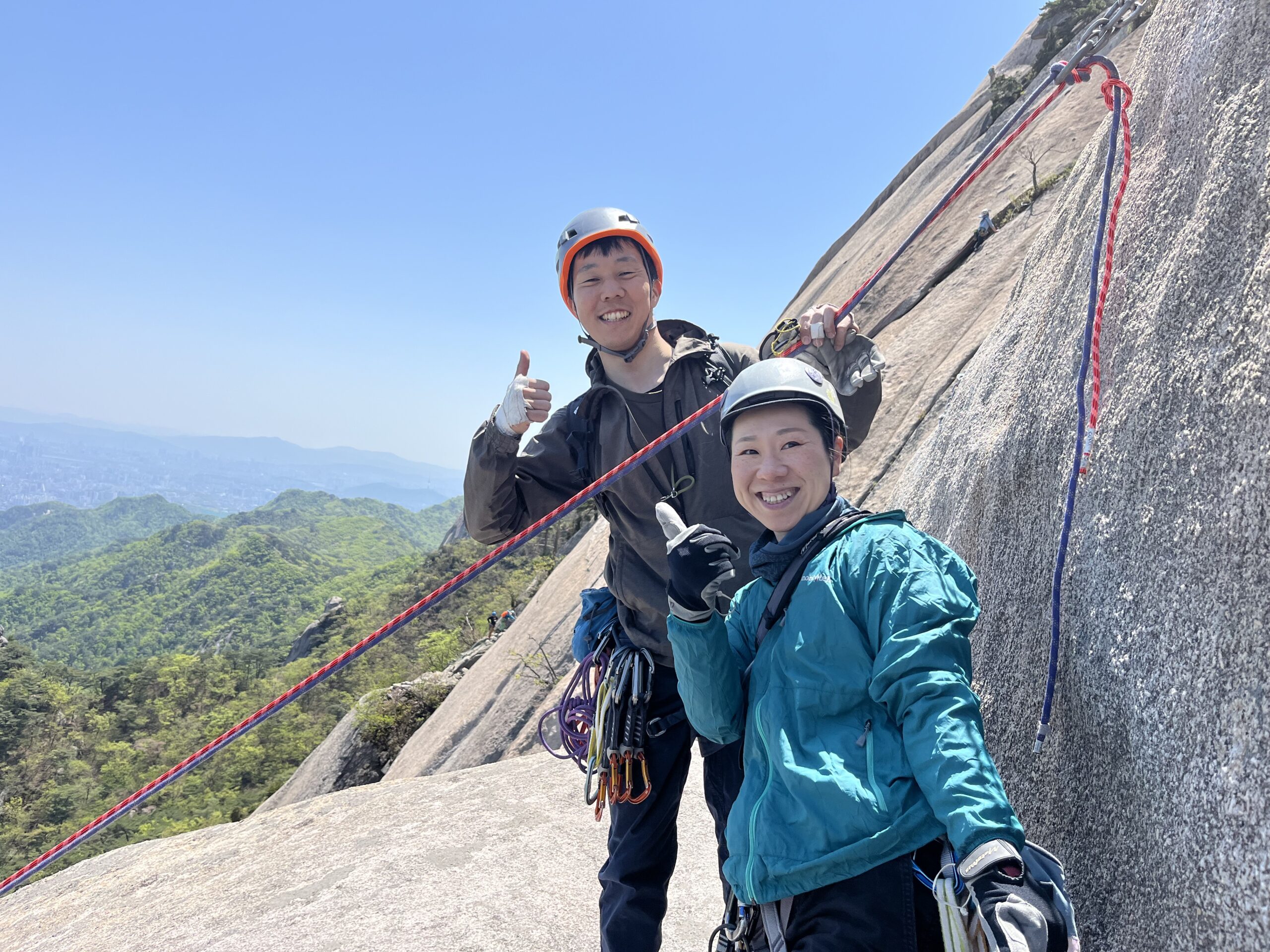 初の海外クライミングであったが、ご飯は美味しく、大きなトラブルや事故なく楽しく終えることができた。安心して任せることのできるパートナーの平野さんに感謝しかない。韓国国内には仁寿峰だけでなく、ソウルから地下鉄で行ける道峰山(ドボンサン)、雪岳山(ソラクサン)などクライミングが楽しめる岩場がまだまだある。沢登りもしてみたいな!また機会があれば訪韓し、登山を楽しみたい。