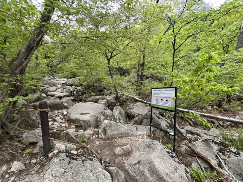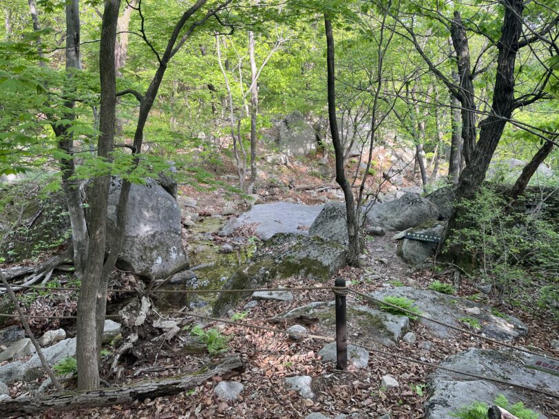 岩場入口の看板 この日は倒れていた