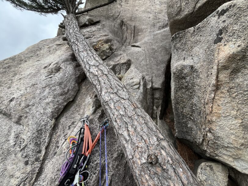 どちらが取り付きに着くかわからず、後ろからきた地元クライマーに「シュイナードBはどっち?」と聞くと左だと親切に教えてくれた。