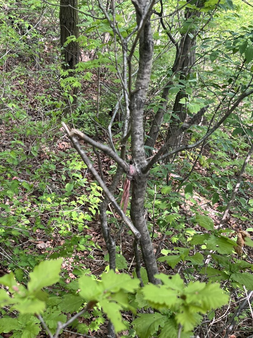 トイレから少し進むと右手に看板がある。そこから登山道を外れて細い沢を渡渉。