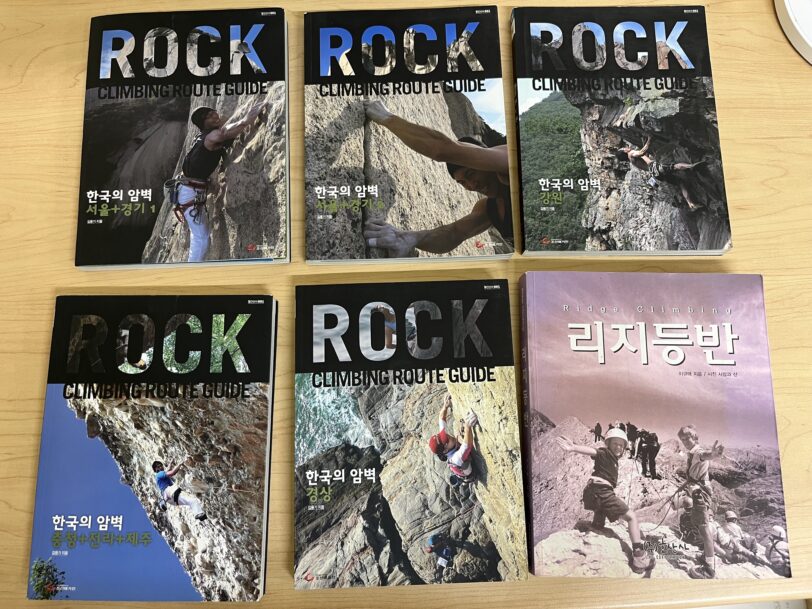 仁寿峰は多くの日本人が登っているので、ネットで検索すると有益な情報を多く仕入れることができる。それ以外の岩場の情報はネット上に少ないため書籍が参考になると思う。以下、入手できた韓国の岩場に関する書籍等である。絶版になっている物がほとんどで探すのに苦労すると思う。簡単に検索できてしまう現代でわざわざ本を探すという楽しさをぜひ味わってほしいなぁと思う。探す時の参考になれば幸いである。