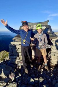 楽しい時間はあっという間に過ぎ、山頂稜線に出ると程なくゴール!河合氏と熱い握手を交わす(抱擁はなし)