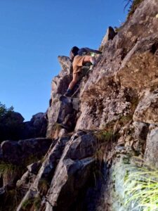 登りで脱いだ防寒着をまた着込んで下山。決して油断はできない岩壁を慎重に降下する。