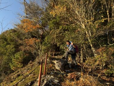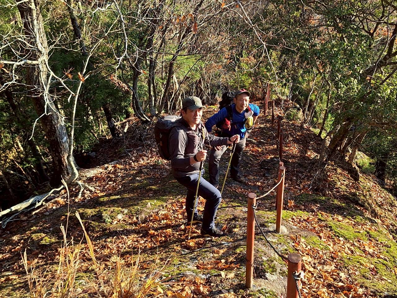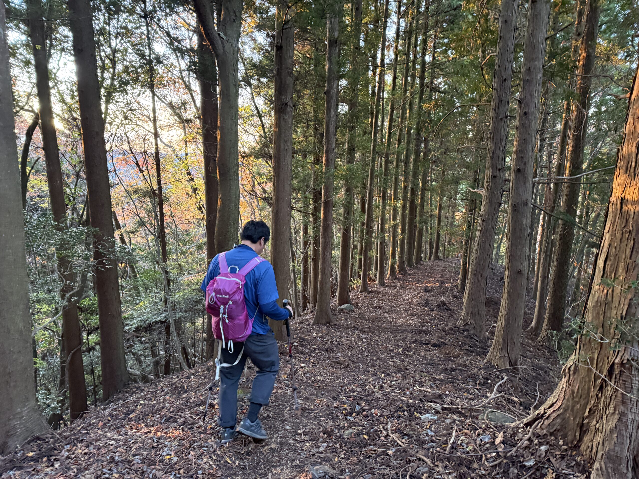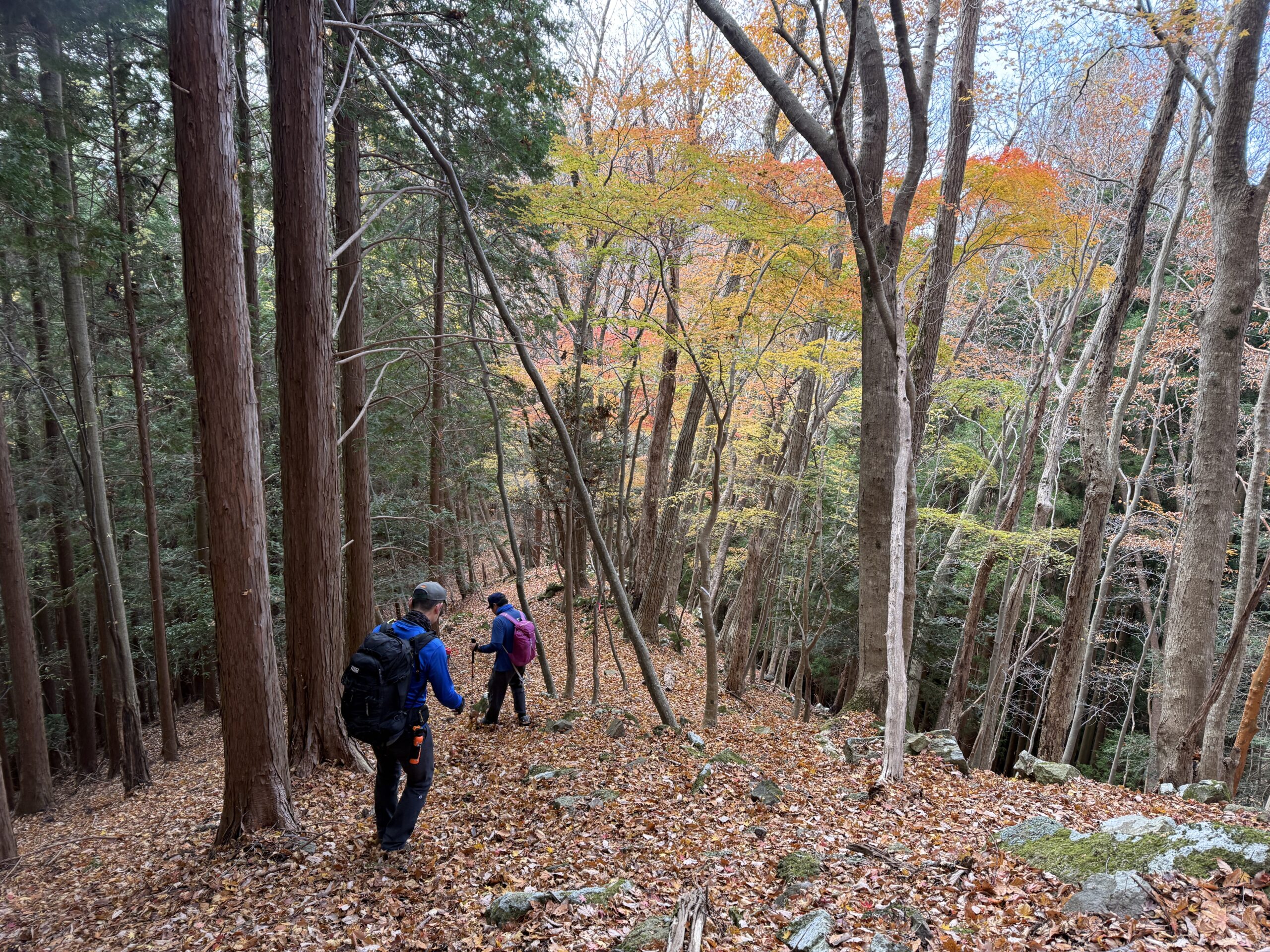 落ち葉も多く滑りやすいため気を付けて歩きます。