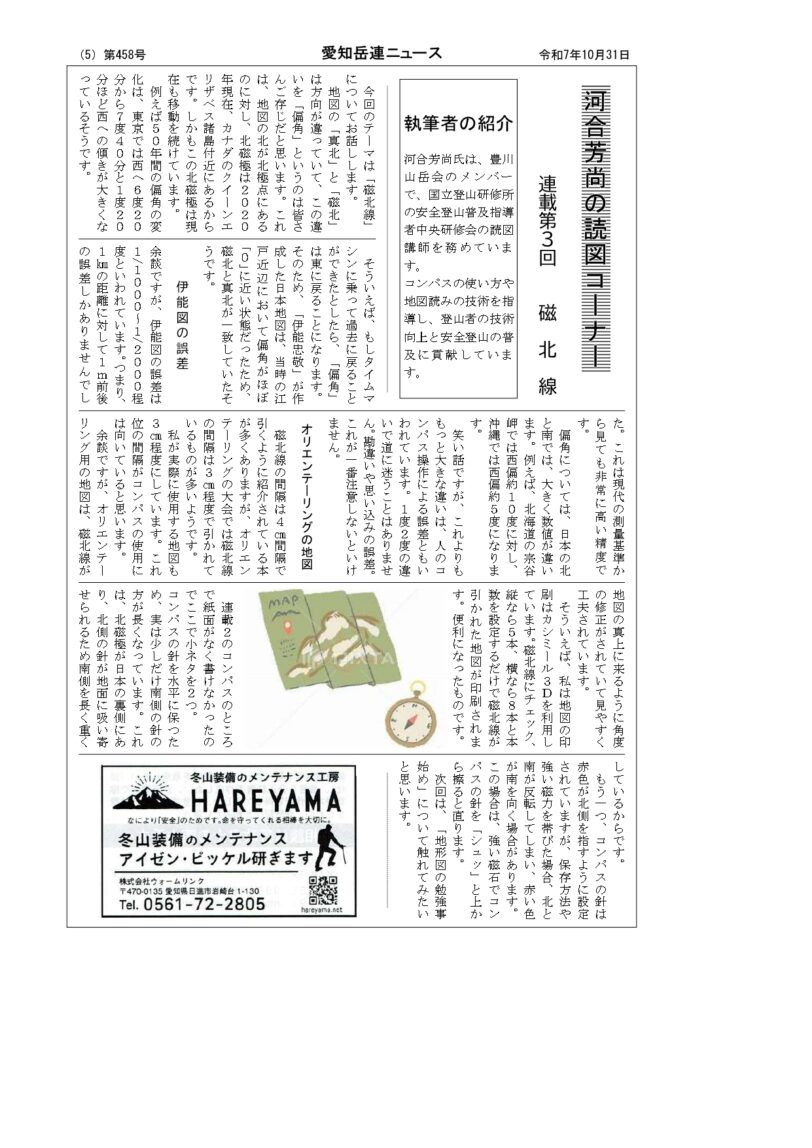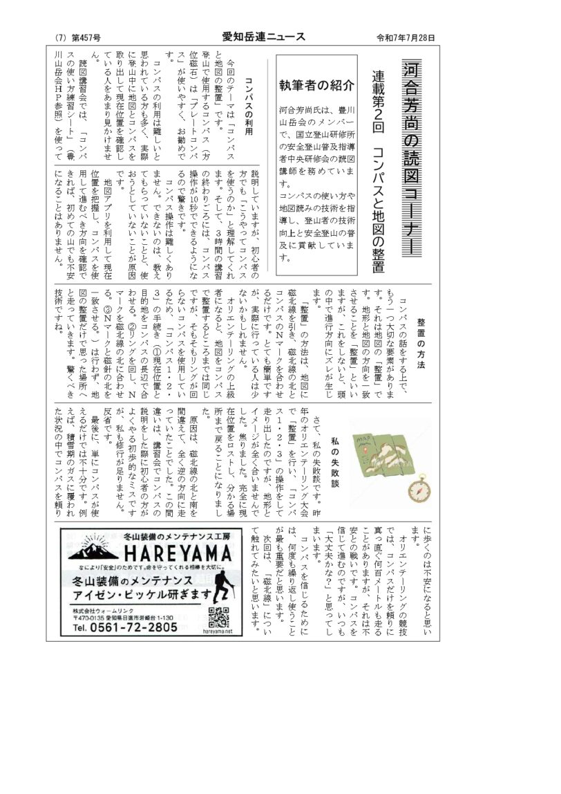 愛知岳連ニュース(河合芳尚の読図コーナー連載)
