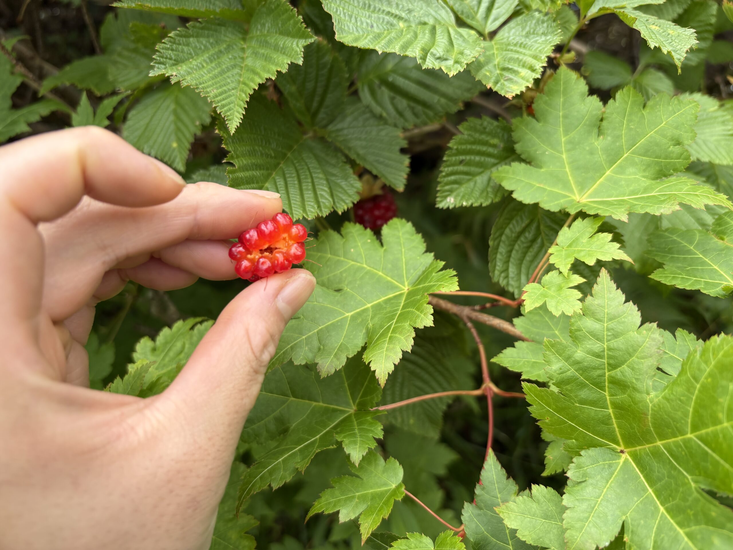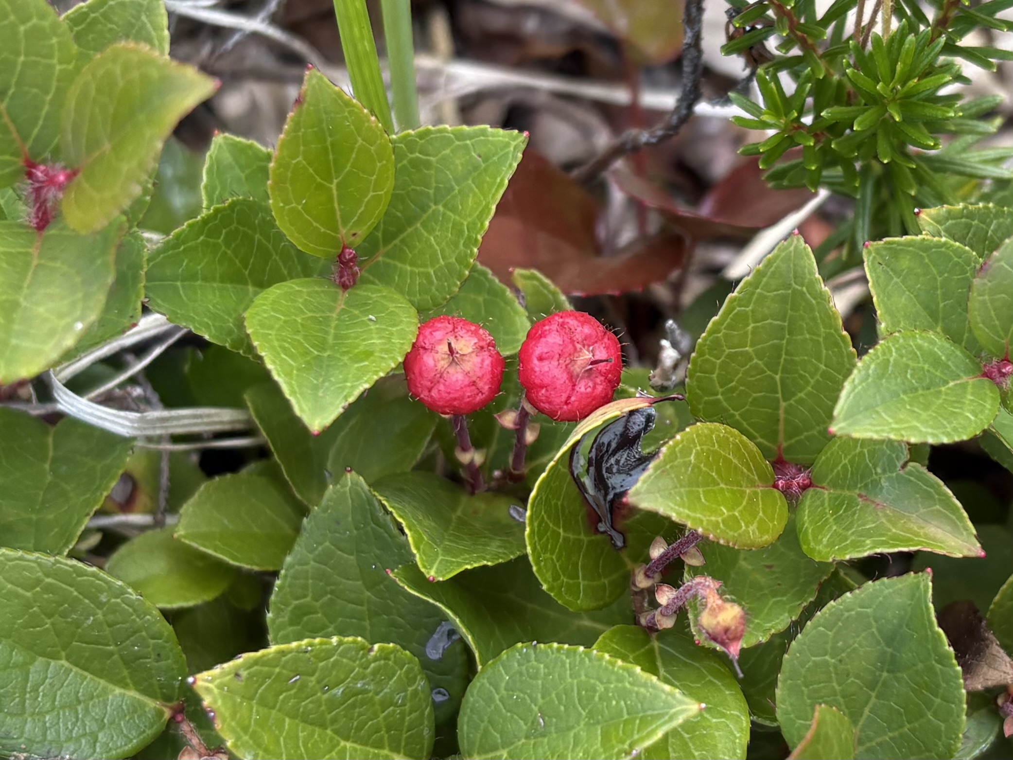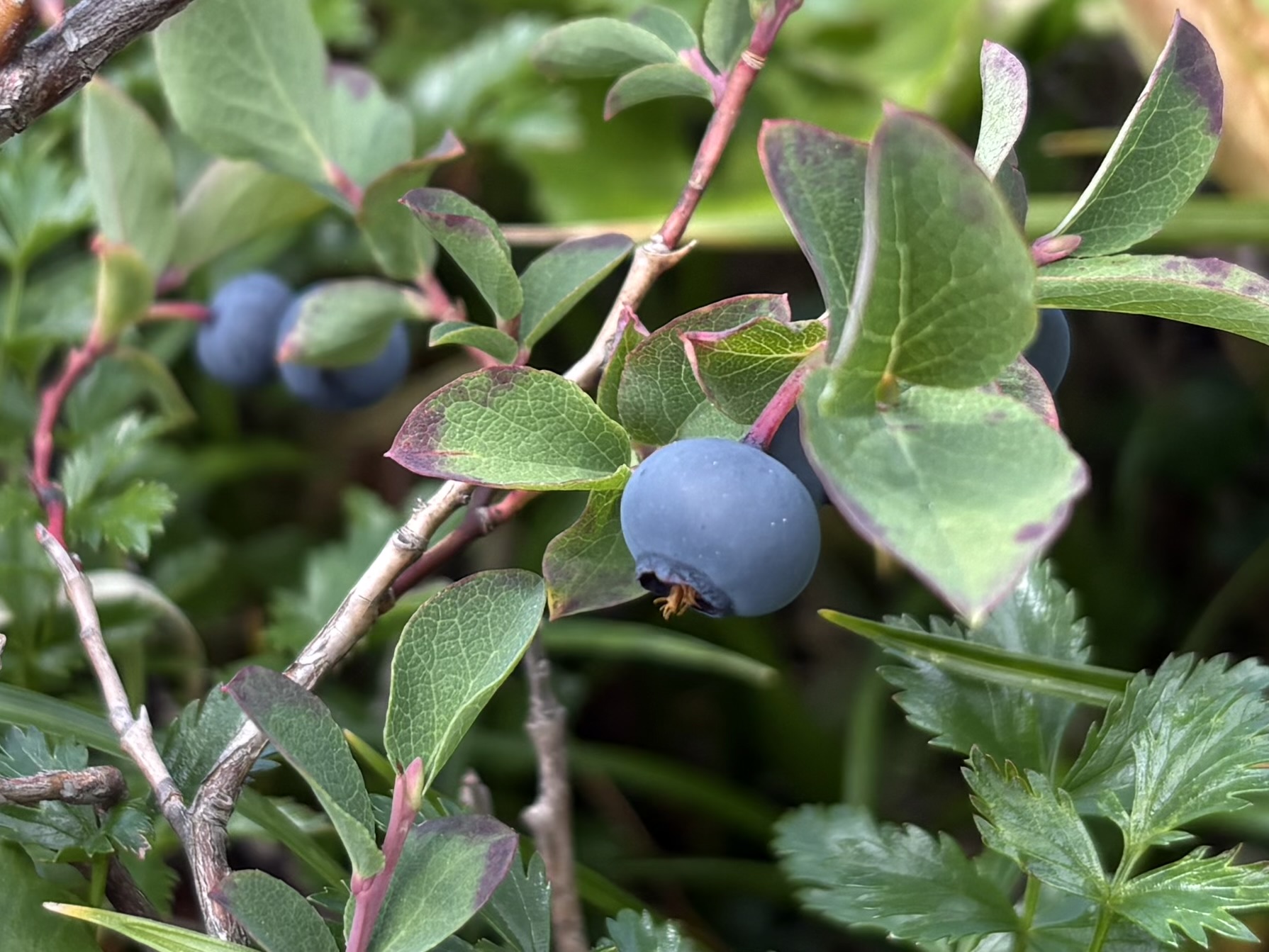 歩きやすい木道を歩いていると、右も左もブルーベリーだらけ!クマ達はここには来ないのかな?