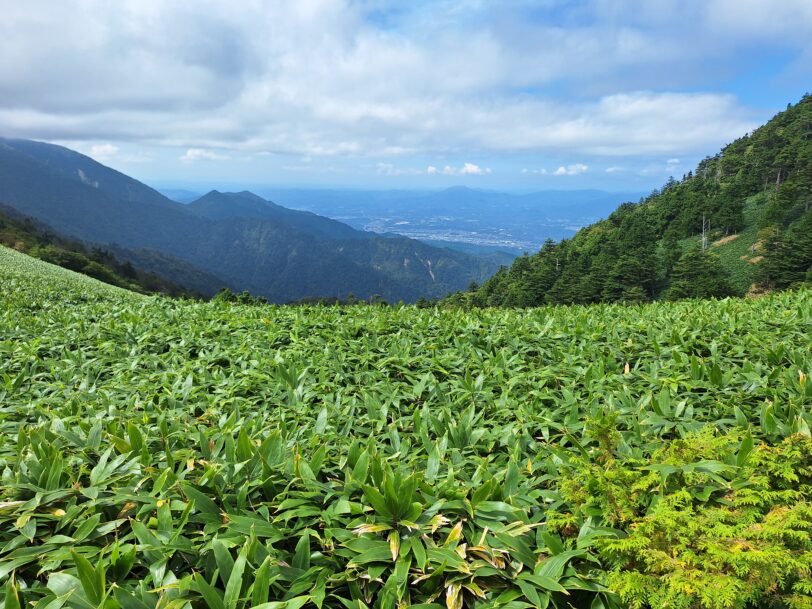 稜線付近も一面笹で覆われ景色が素晴らしい