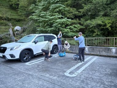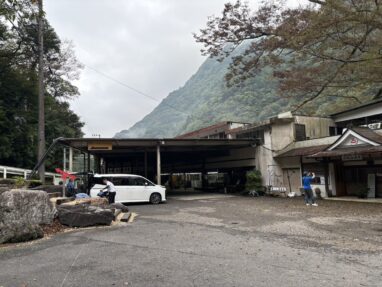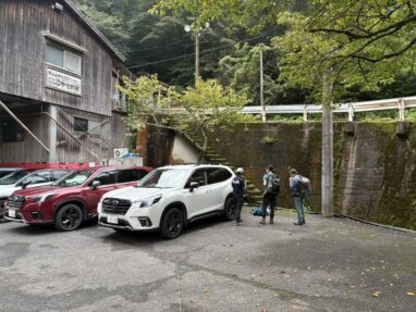 5:00起床し、始発のロープウェイに間に合うよう移動して石鎚山ロープウェイ山麓下谷駅近くの駐車場に車をとめる。有料駐車場500円/1台