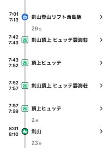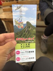 私たちのグループが一番乗りでしたが続々と登山客が集まり始め、7時20分には開場。7時40分の始発に並びます。ロープウェイ料金往復2200円/大人