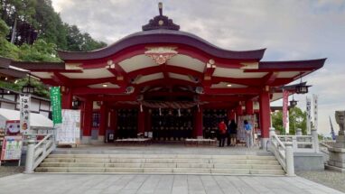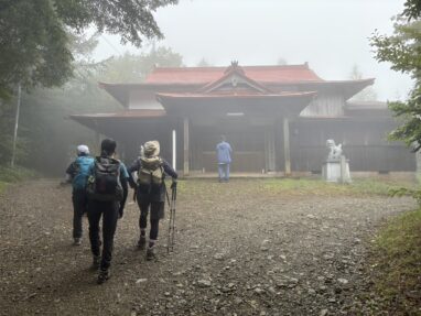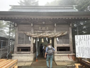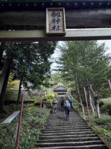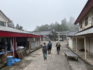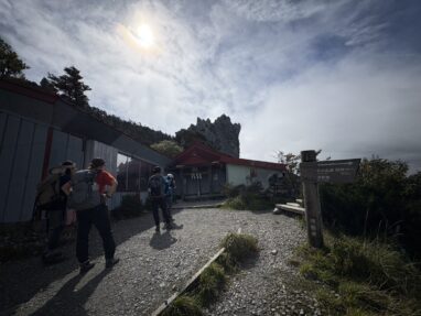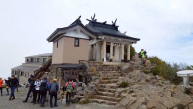石鎚山をあとにし約3時間30分かけて剣山への主要起点となる見ノ越へ移動。途中、石鎚山本宮に立ち寄り皆で参拝。梅田さんは御朱印を手に入れました。