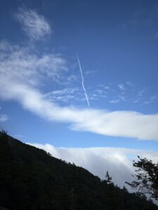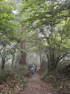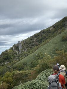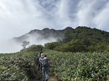雲が多くて景色は望めませんが、上昇する雲や流れるように山肌を下る雲、形状を楽しみながら歩きます。