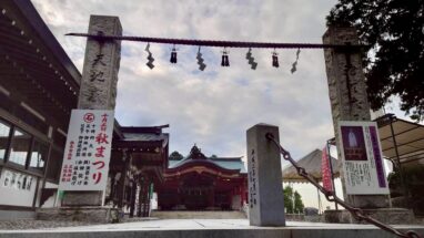 大劒神社は「天地一切の悪縁を断ち、現生最高の良縁を結ぶ」といわれているそうです。若いお嬢さんたちの未来を祈念し手を合わせました。赤い屋根の奥に見えるのがさきほど反対側から見えていた御塔石。