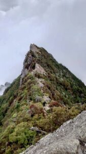 石鎚山では鎖場がすごく楽しかったです。山頂でガスが切れる瞬間もあり切り立った岩の荘厳な景色が眺められて良かったです。山頂は老若男女多くの登山客で賑わっており、人気の程が伺えました。