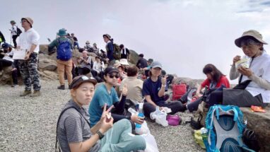 石鎚山神社の前で昼食をとります。とにかく大勢の人人人...次から次へとやってくるので山頂は満員でした。