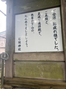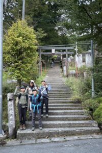 境内にはお土産屋さんなどが立ち並び観光地のよう。全員が怪我無く下山しますようにと安全祈願しました。