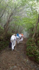 白装束の一団とすれ違う。まさに山岳信仰が盛んなようすが伺えました。