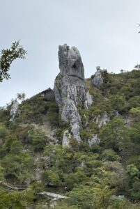 分岐で大劔道コースを選択。御神体である巨大な御塔石(おとうせき)が見えてきた。