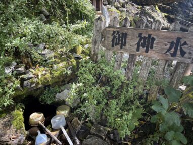 病気が治る若返りの水といわれる名水だそう。柄杓にとっていただきました。