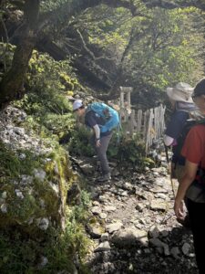 登山道はしっかりしてますが片側が切れ落ちた箇所や滑りやすそうな大きな岩があったりと、緊張感が走ります。
