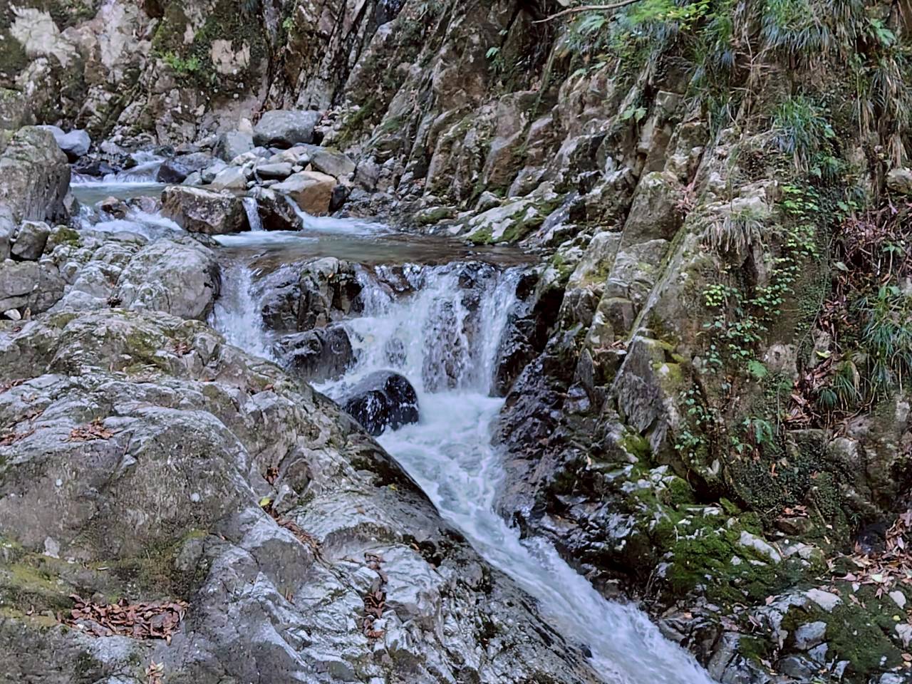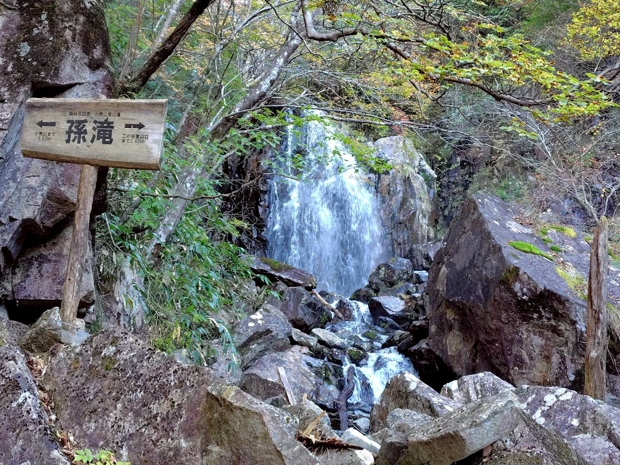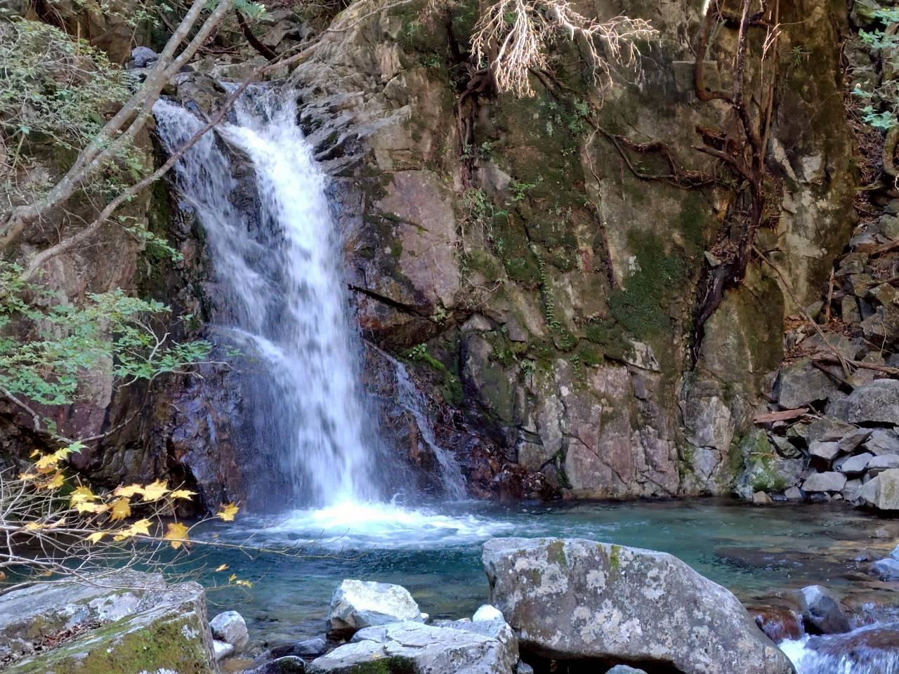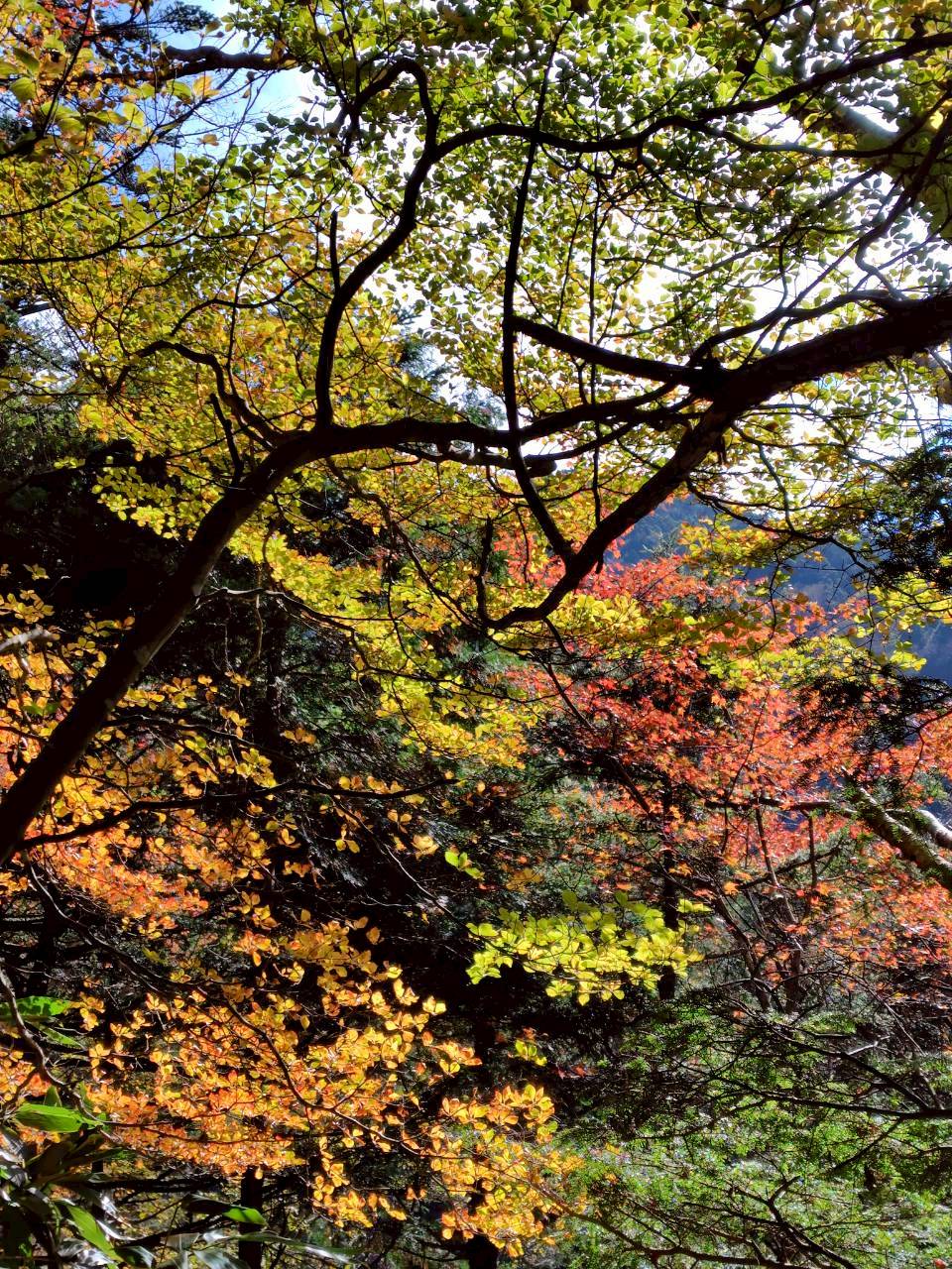 10月29日朝6時に岡崎集合で、乙女渓谷キャンプ場から二ノ谷コースに入る。歩きやすい木道・階段を進むとねじれの滝、和合の滝などのきれいな渓谷。熊出没が続く中、私が先頭で大きな鈴をつけ、時折ホイッスルを吹きながら、警戒して進みます。