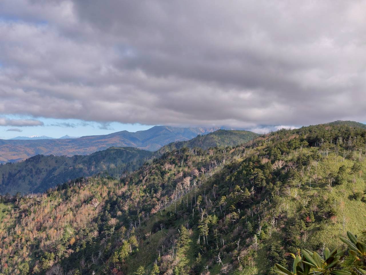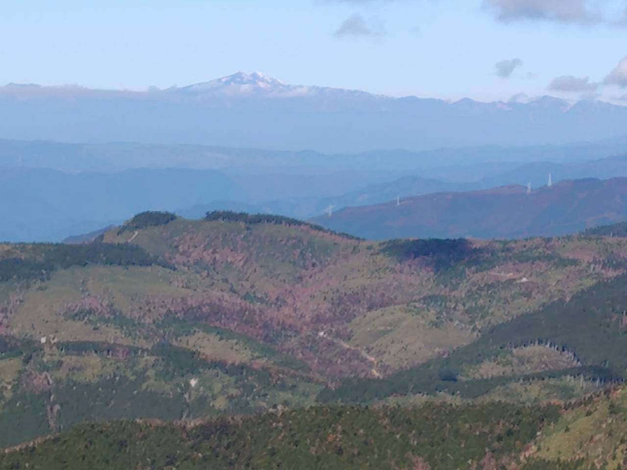 途中、御嶽の左遠方には北アルプス 円錐の笠ヶ岳、黒部五郎岳、雪をかぶったのは薬師岳かな?