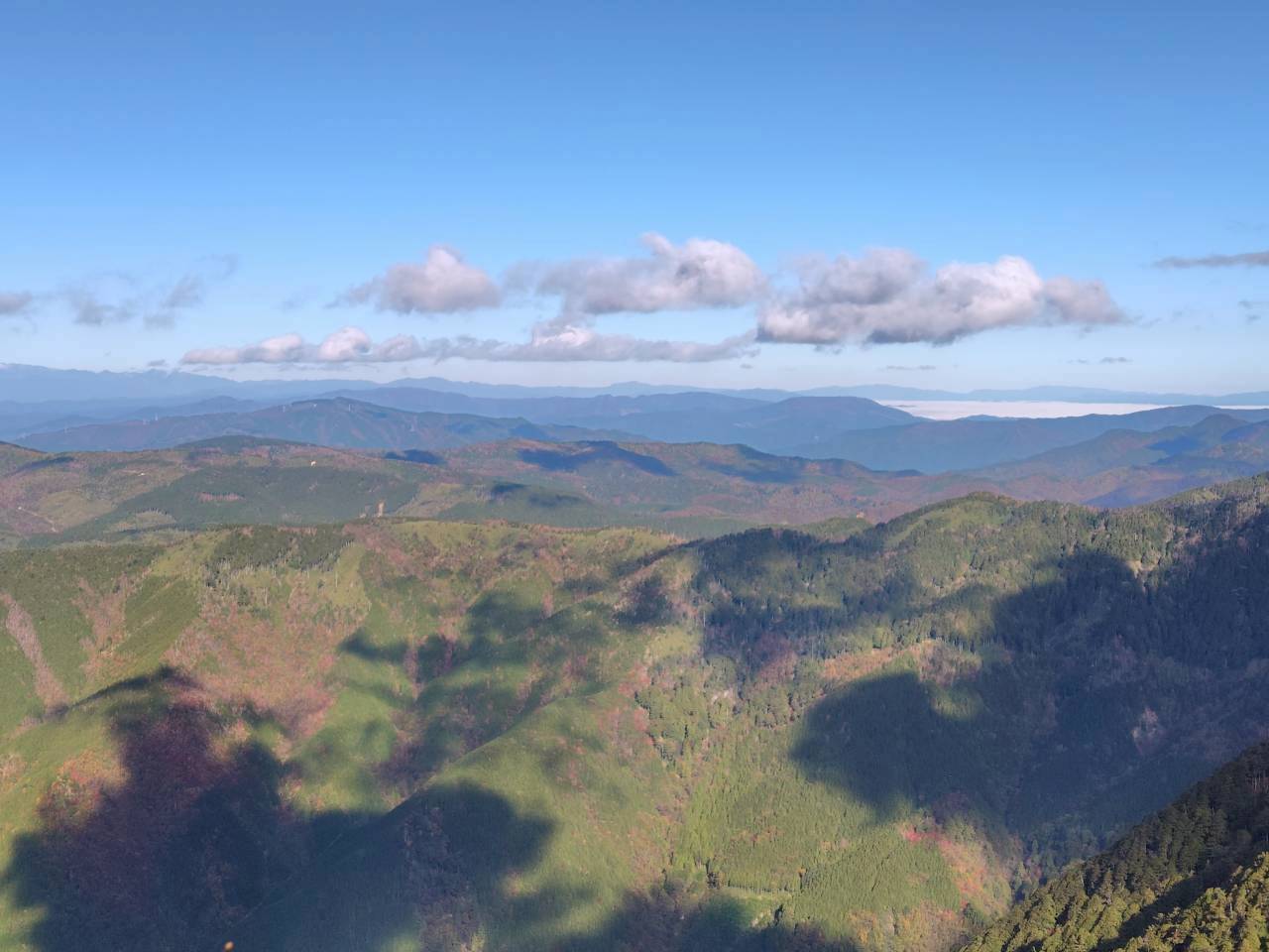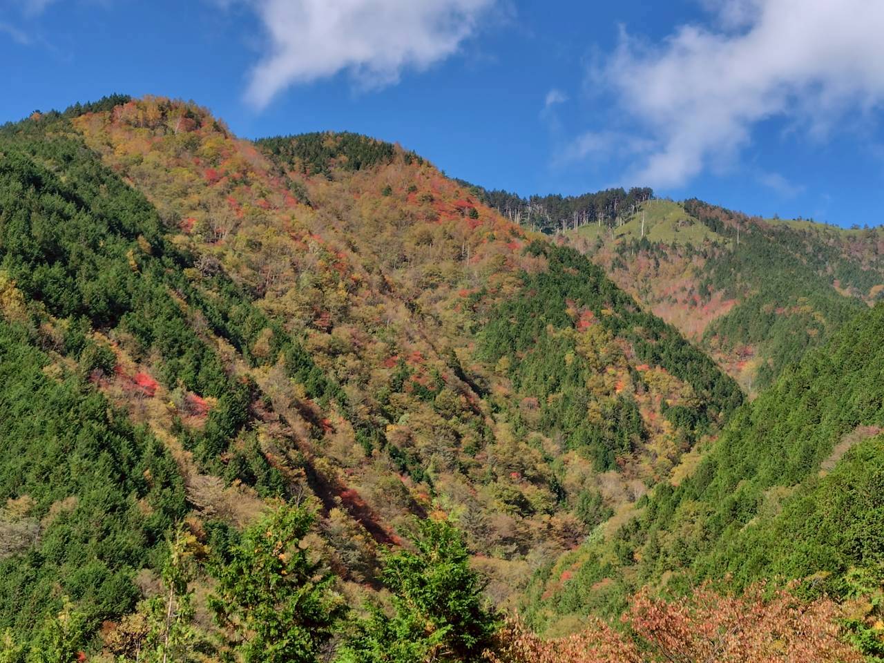 三ノ谷登山道の尾根を下った所から 周り1200m付近の紅葉がきれいでした。
