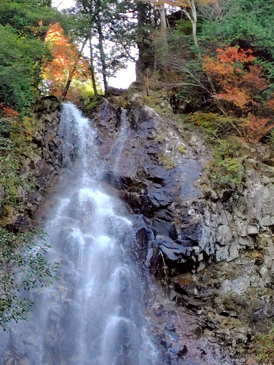 夫婦滝の内、雄滝展望台まで来ると紅葉がすばらしく、滝の周りを彩っています。
