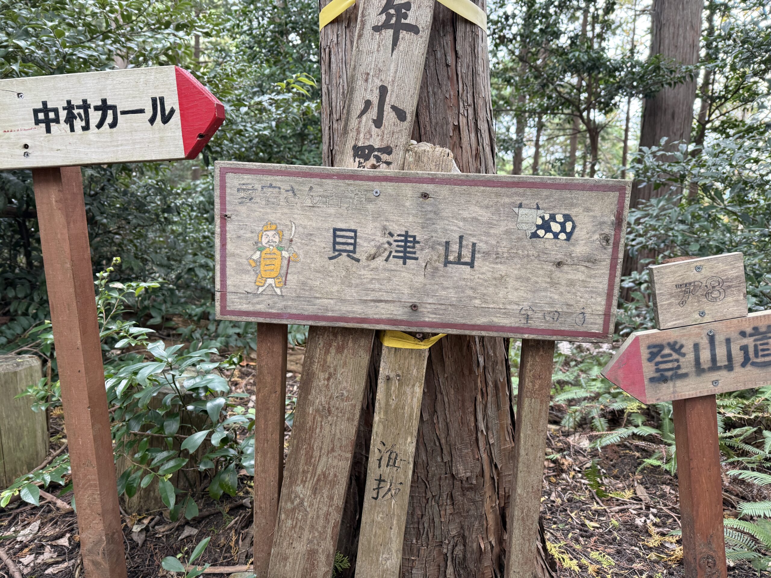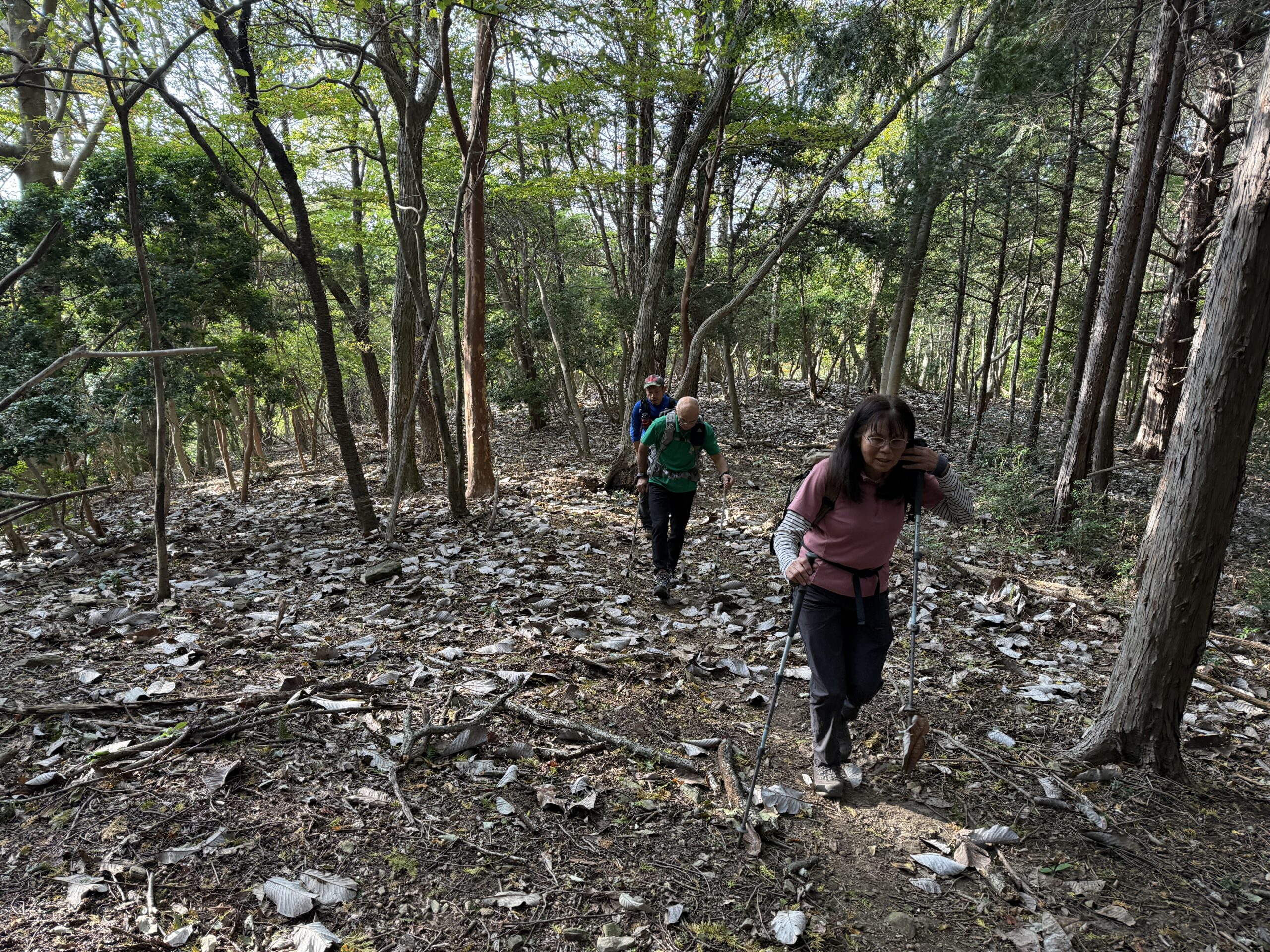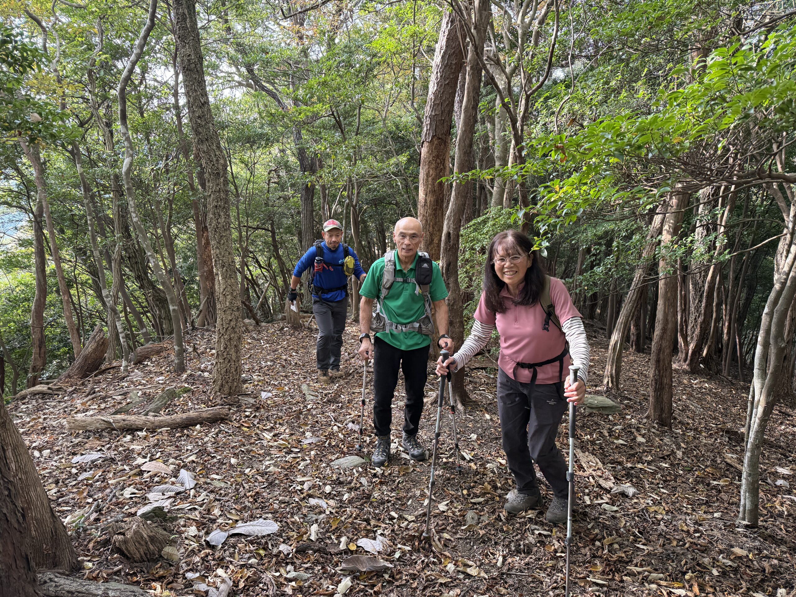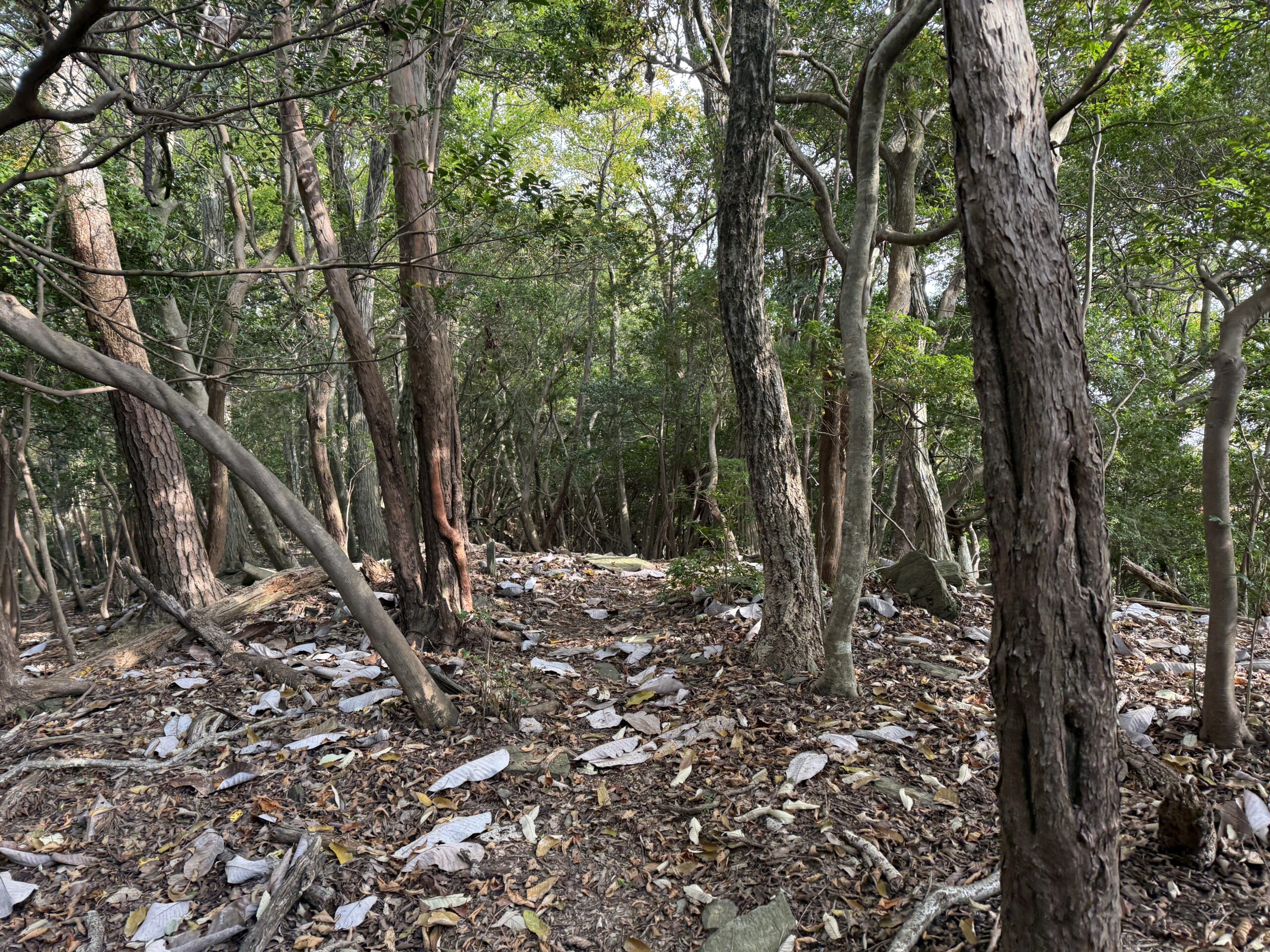 木漏れ日が気持ちの良い樹林帯を歩きながらピークハントして下半周最終の貝津山まで到着。