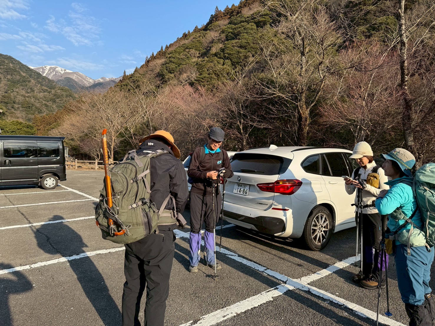 7:45に宇賀渓の駐車場(一日500円)に駐車し、鳥井君はアイゼンとピッケルを遠山に借りて8:07に出発。