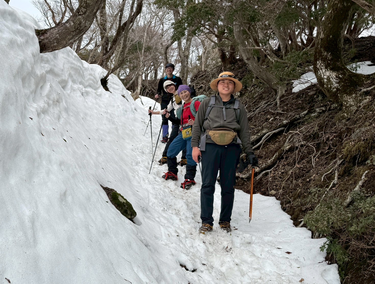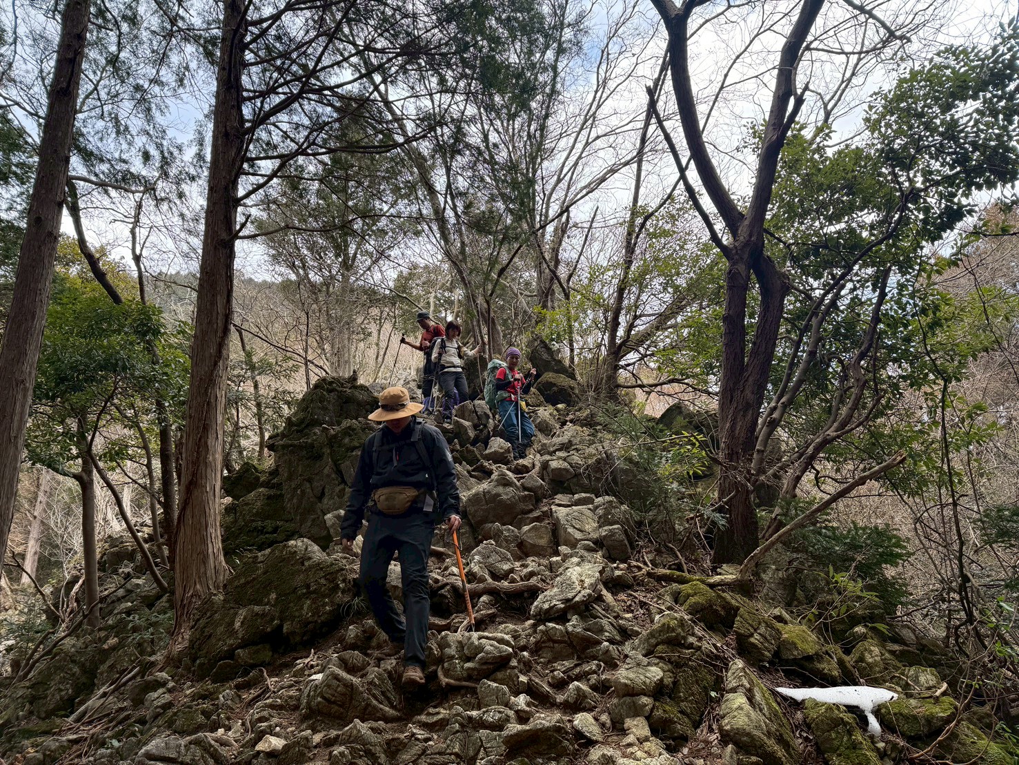私自身は来月で退会予定(4月初めに奈良へ転居)で、会員としてはこの山行が終りになるかなと思っています。終りが近づいて1982年の入会以来のたくさんの山行が思い出されます。先輩や山仲間に感謝です(^o^)