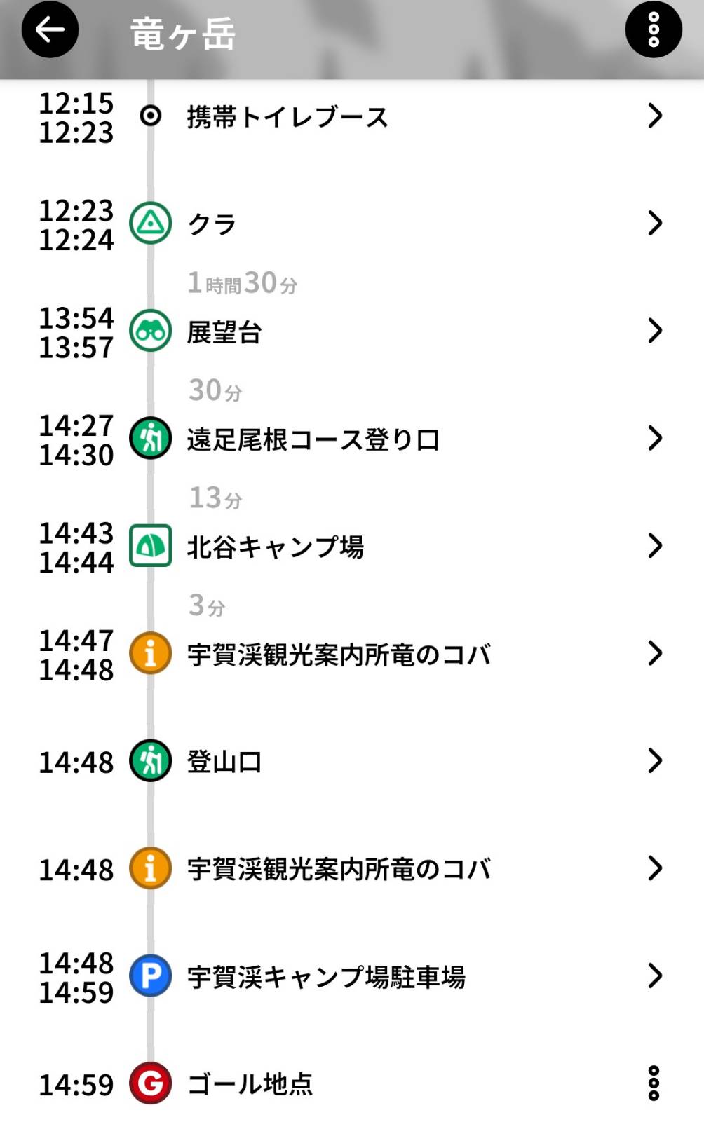 雪のない尾根道を遊歩道まで下り、14:59に宇賀渓に戻りました。