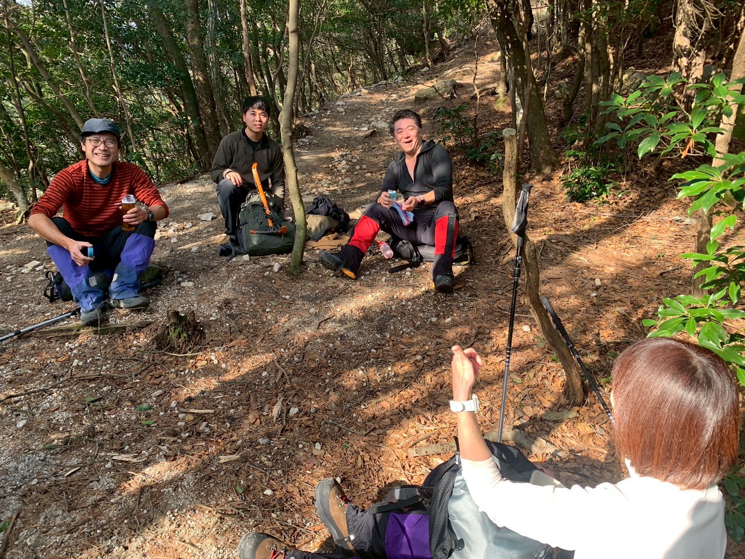 金山尾根と遠足尾根の合流点から、遠足尾根の急斜面を下ります