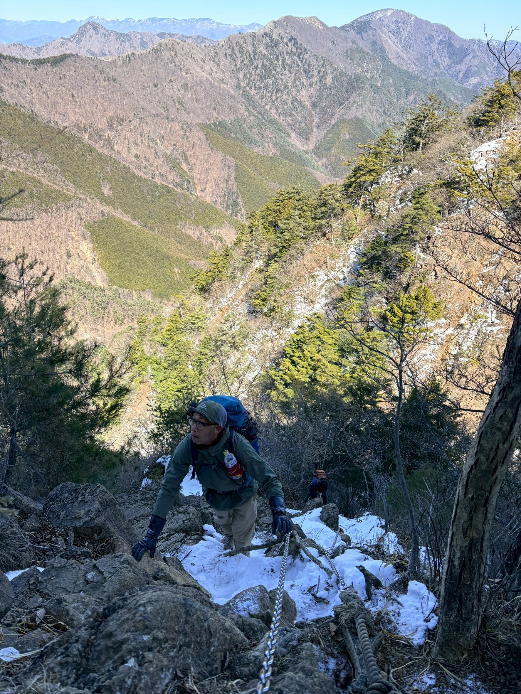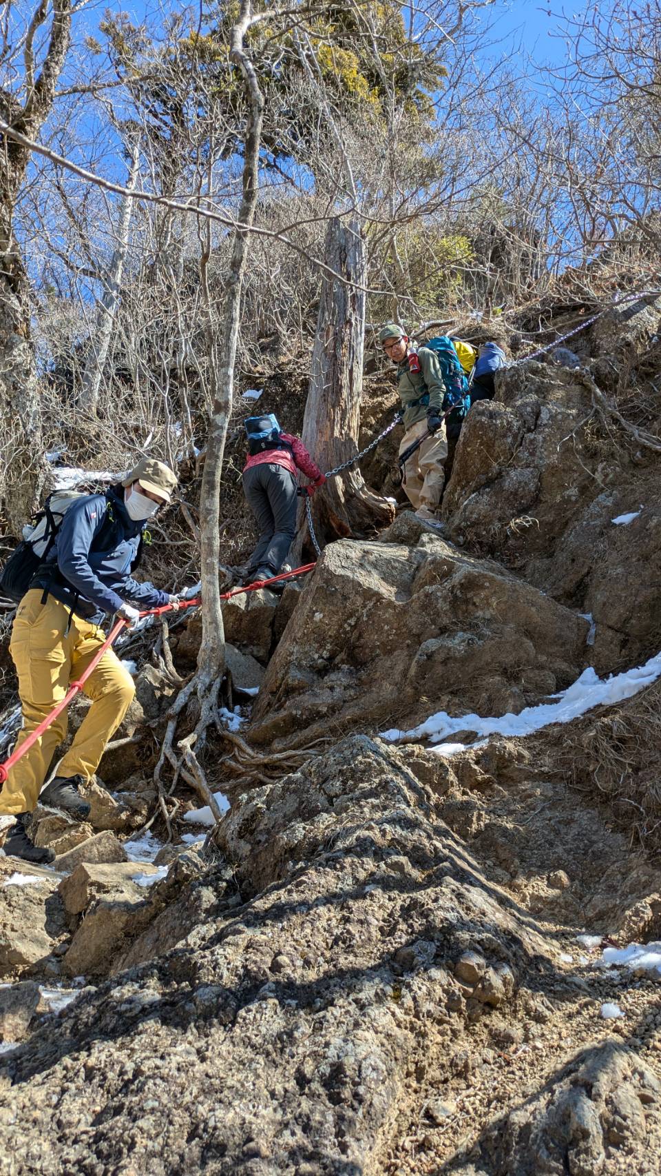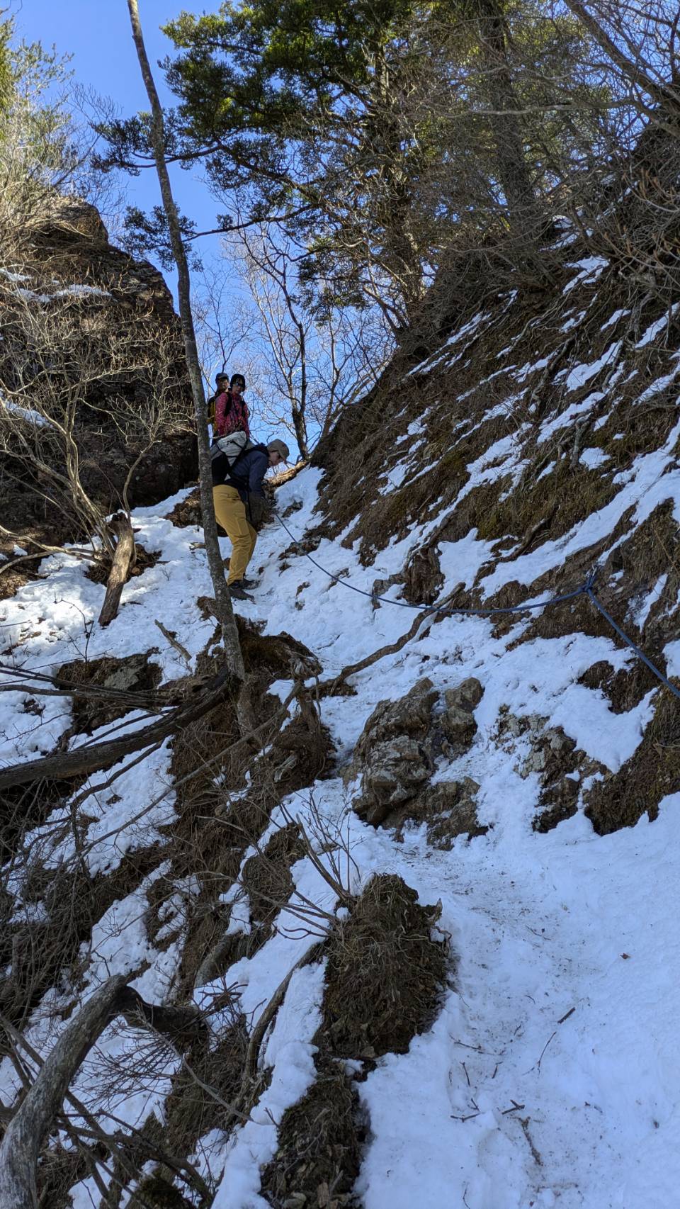 下りの登山道もヒックスロープが多く設置されていて慎重に下って行く。