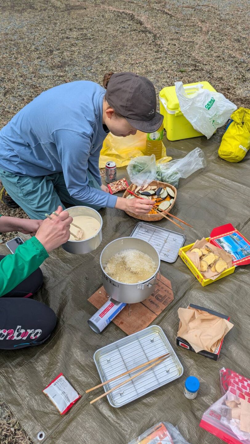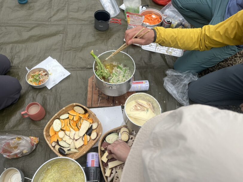 2017年に浅田さんが山で天ぷらを食べたいとリクエストしたのが始まりで、今年で7回目のてんぷら山行。