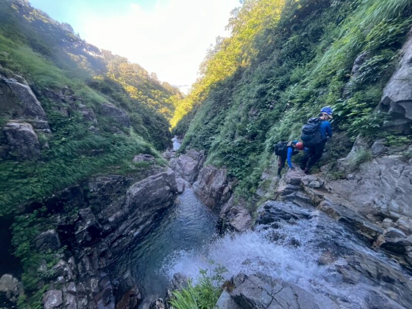 今年の盆休みは前半がずっと天気が悪く、予定を後ろに移動して北ノ又川へ沢登りに出かけた。