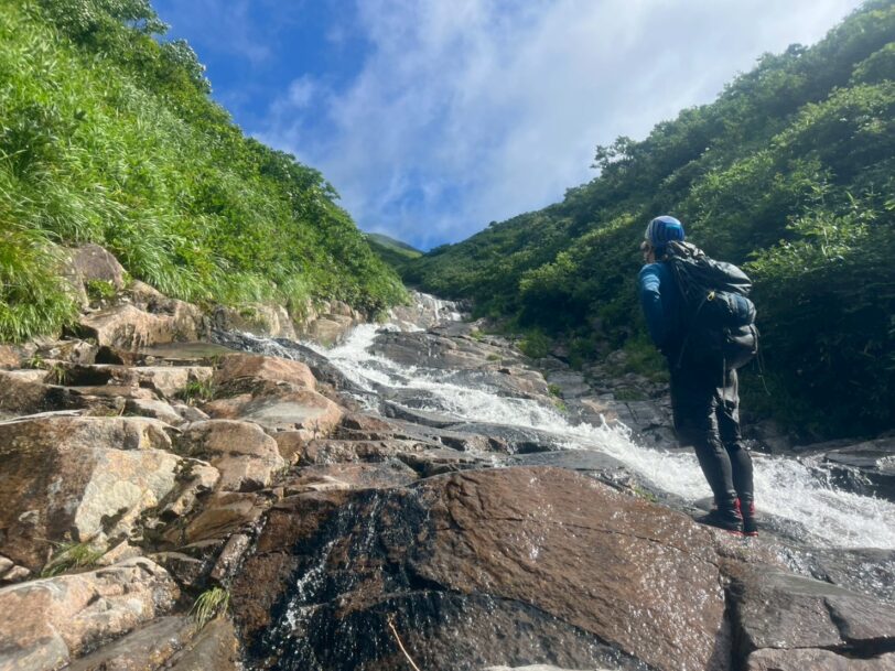 標高差1400mの沢登りを4時間半ほどで登り終えました。サクサク登れるだけあって逆に疲れます。