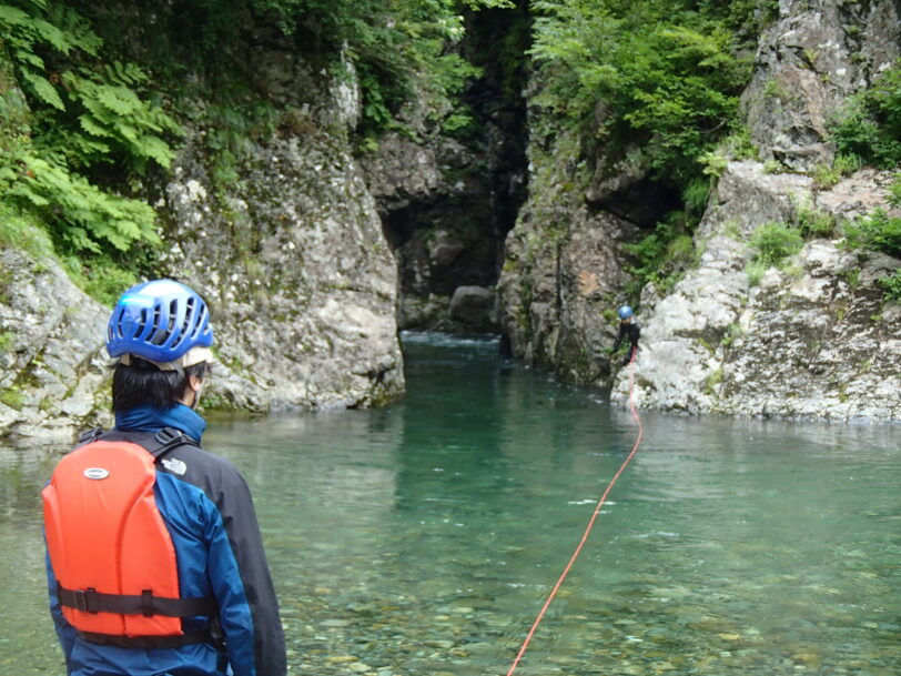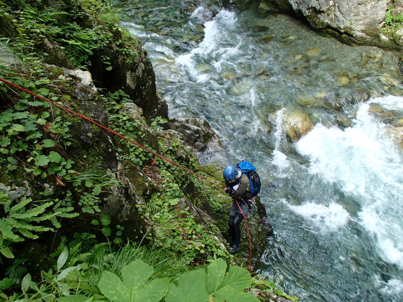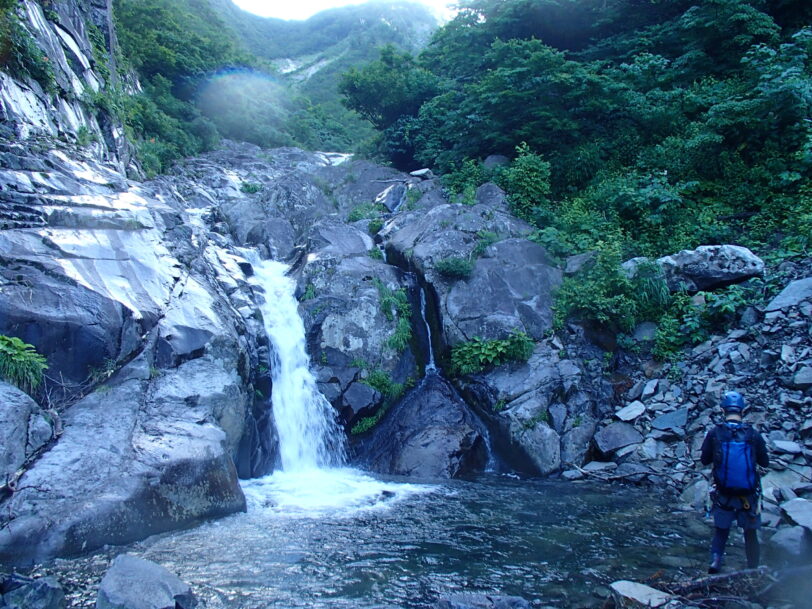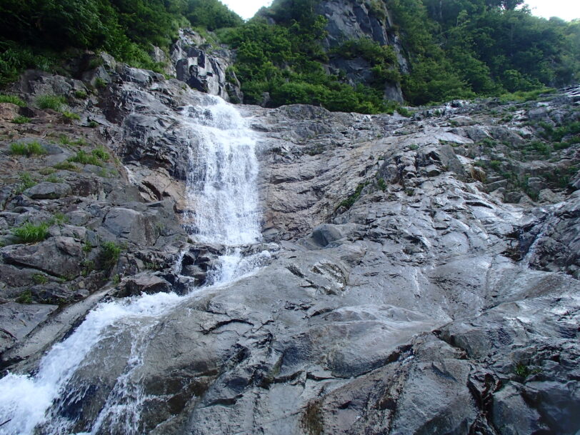 8月15日 4時起床—5:50出発—6:45 2条5m滝—9:20上部100mナメ滝—10:30避難小屋—13:00駐車場着