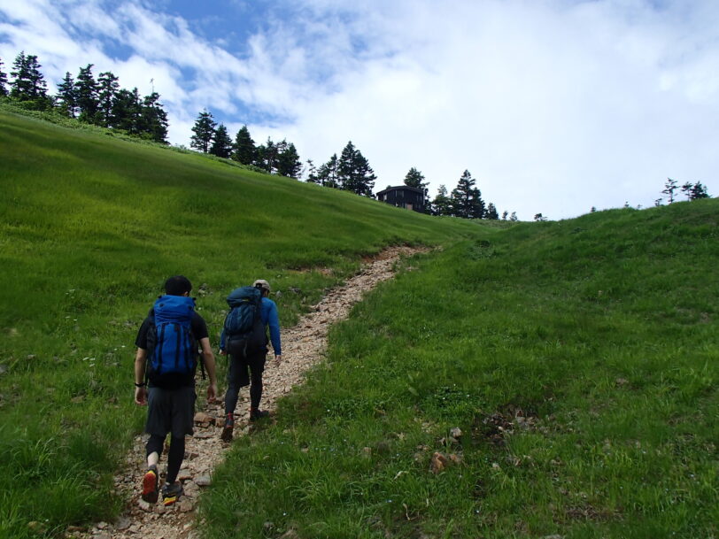 最後は藪漕ぎも無く草原を避難小屋まで歩き終了。