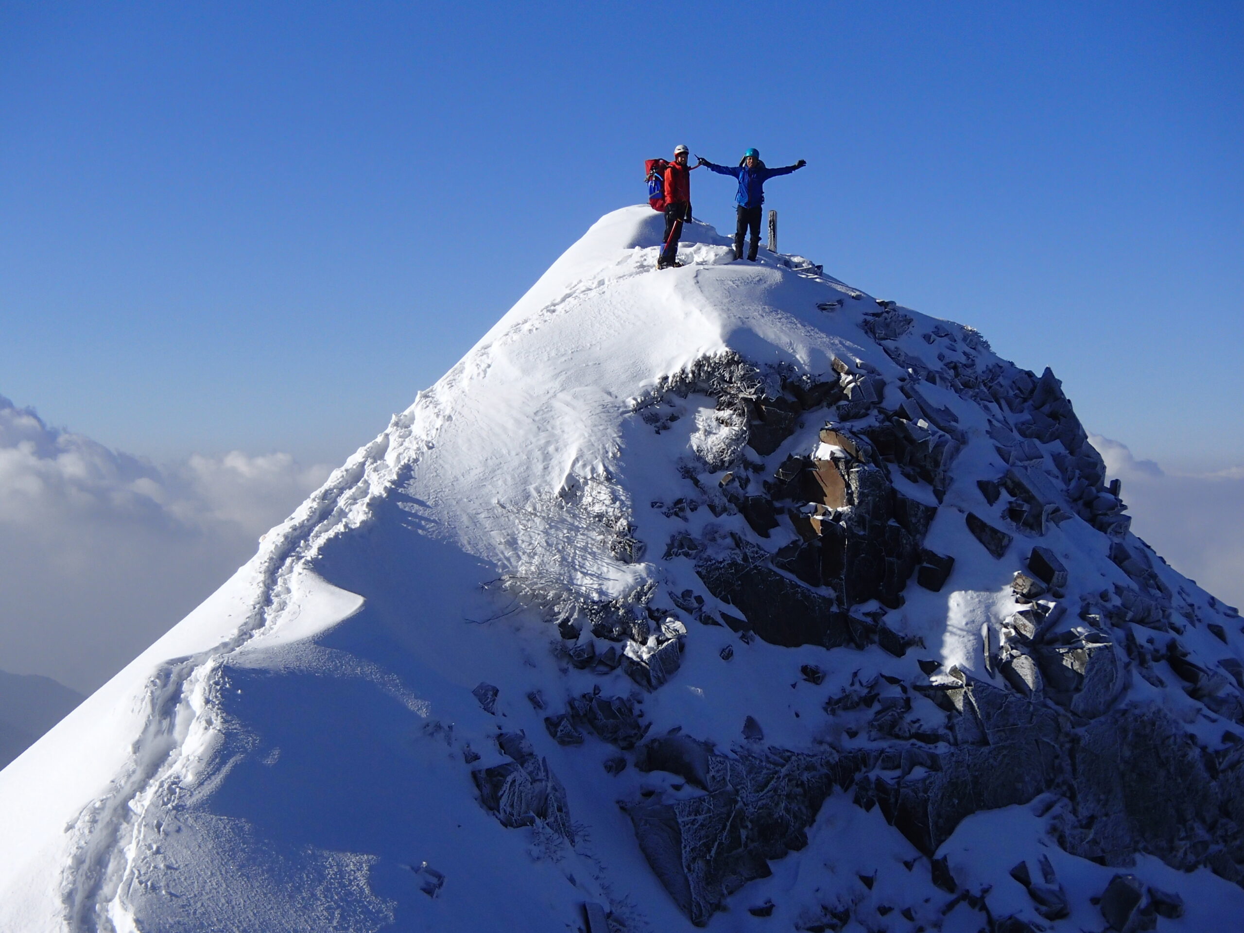 一時間もすると、西穂高岳山頂に到着しました。流石に山頂は風が強い。でも今日も天気が良く、直前までの悪天候との予報は噓のようです。
